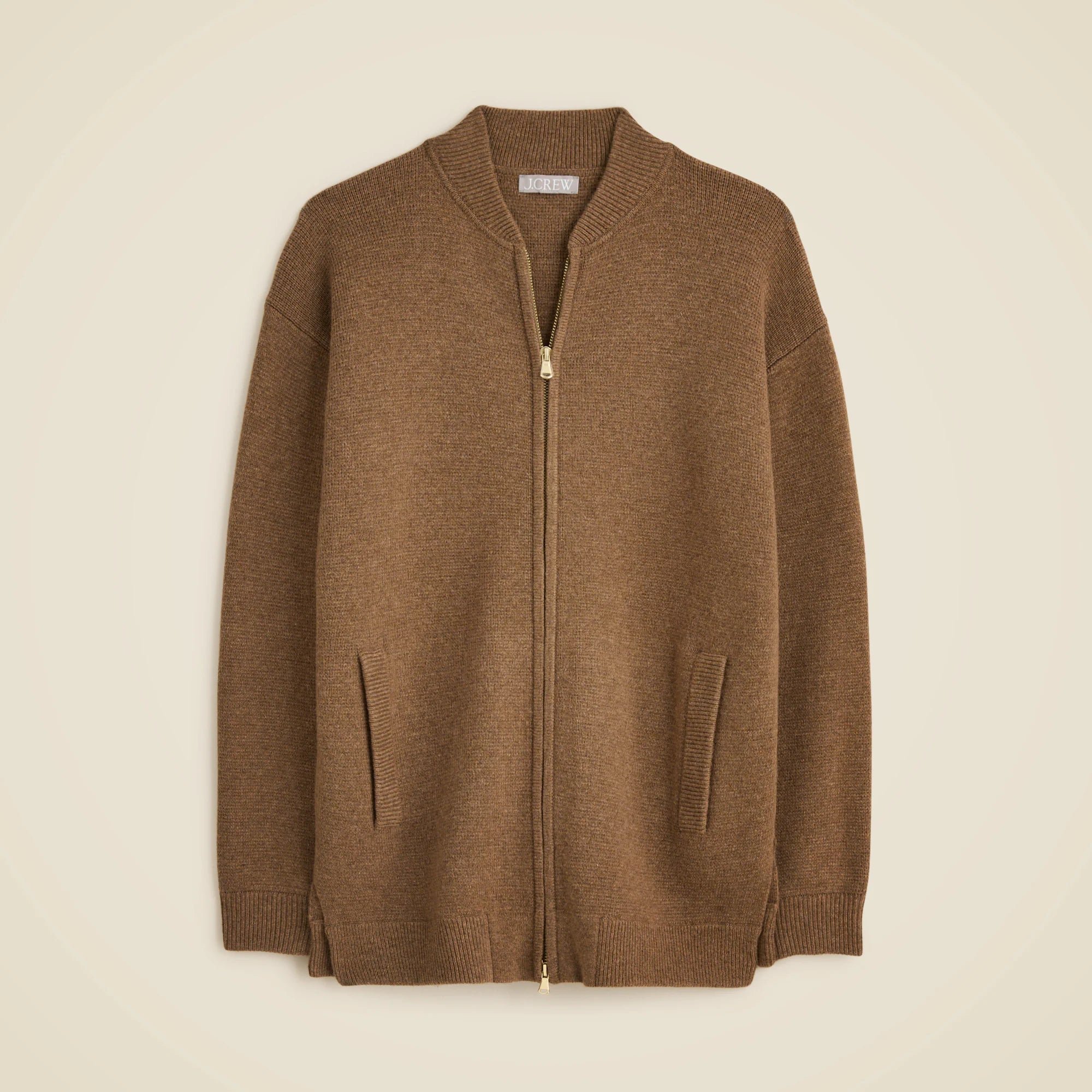 The best of both layers. With the comfort of a sweater and the silhouette of a jacket, it's the perfect piece to throw on—whether you're going out or staying in. It comes in a longer fit that hits below the hips, with a two-way zip down the front and ribbed trim along the collar, cuffs and hem.