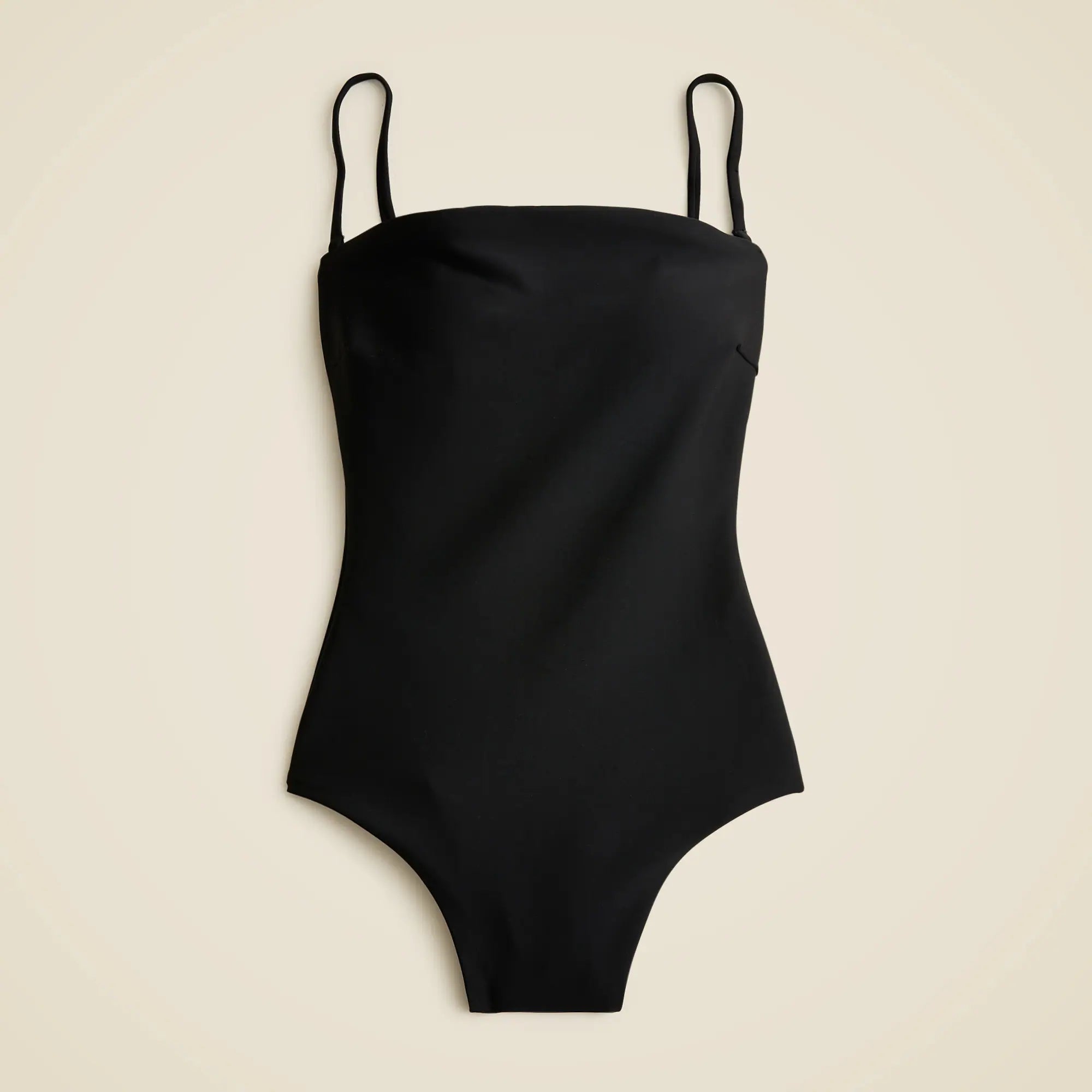 Introducing Classic Sculpt swim. Our new magic swim fabric, designed to hold you in and lift you up. It's crafted from two layers of ultra-fine fabric that are knit together or "interlocked" for subtle compression with a lightweight feel. Plus, the comfy lining is designed to stretch out and then snap back into place, so your suit will always hold its shape. And we combined our heritage-inspired silhouettes with modern fabric-cutting techniques, so it fits like a beach-day dream. For fans of our best-selling ruched bandeau silhouette, try this super-flattering style. Plus, it comes with removable straps because we're all about options.