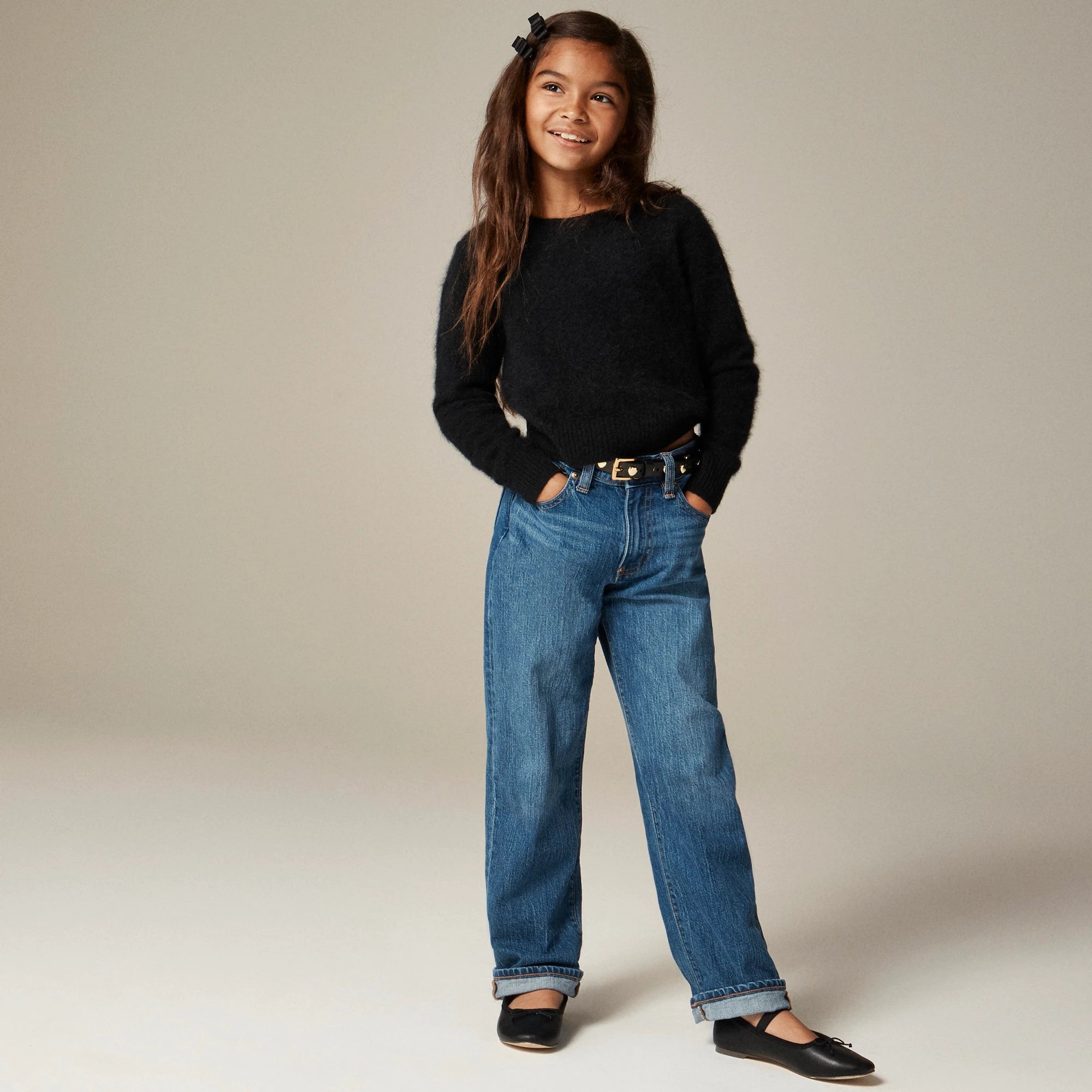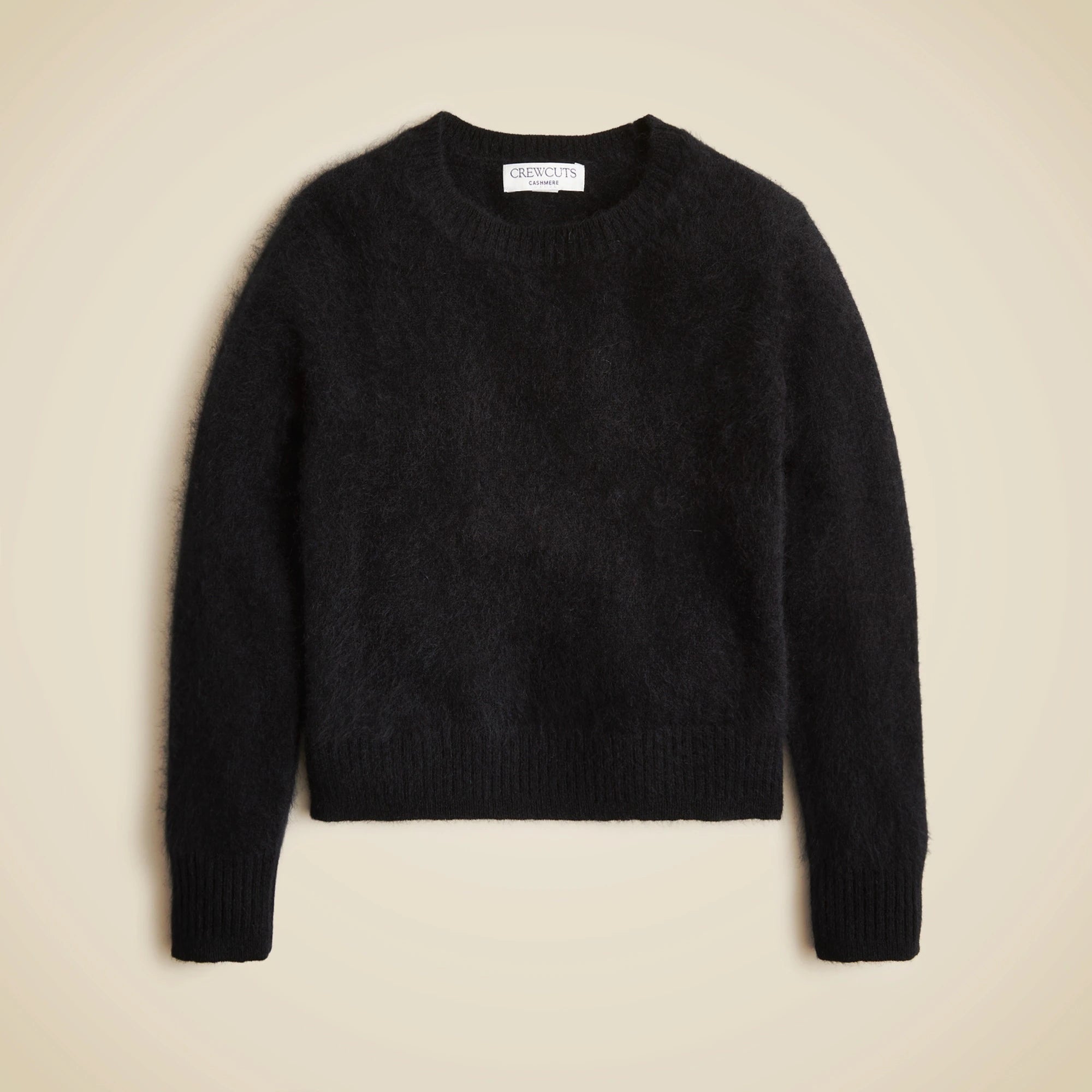 Our best-selling brushed cashmere made mini! This shrunken crewneck is crafted from Mom's totally unique sweater texture, which was specially developed with longer washed cashmere fibers for an extra-fuzzy finish. The result? An unforgettable layer that's unlike anything they've seen (or felt) before. We source cashmere that is certified to the AbTF's The Good Cashmere Standard®, which ensures the welfare of the cashmere goats, protects natural resources and improves the working conditions of farmers and farmworkers in Inner Mongolia.