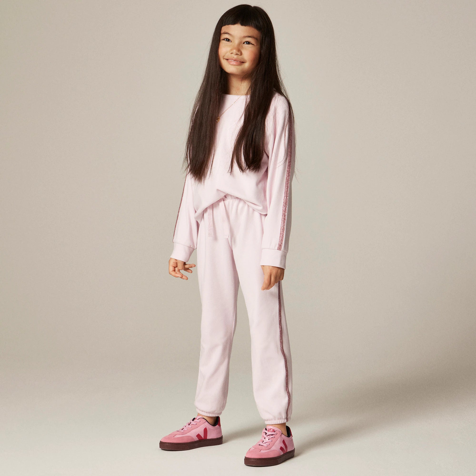 Girls' cozy rib sweatpant with glitter stripe