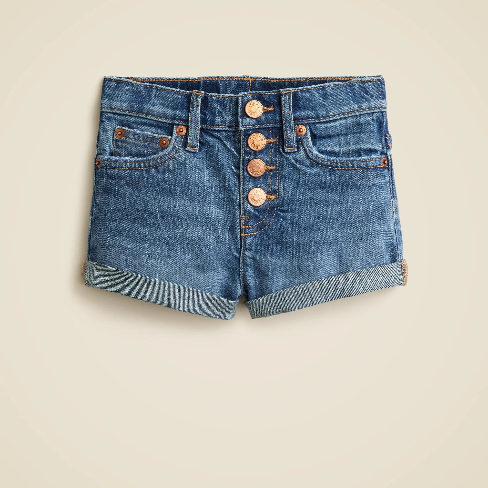 A just-like-Mom's staple. . .These cuffed jean shorts are slightly distressed for a lived-in look and crafted in stretchy denim for maximum comfort. Detail we love: the button fly inspired by vintage styles.
