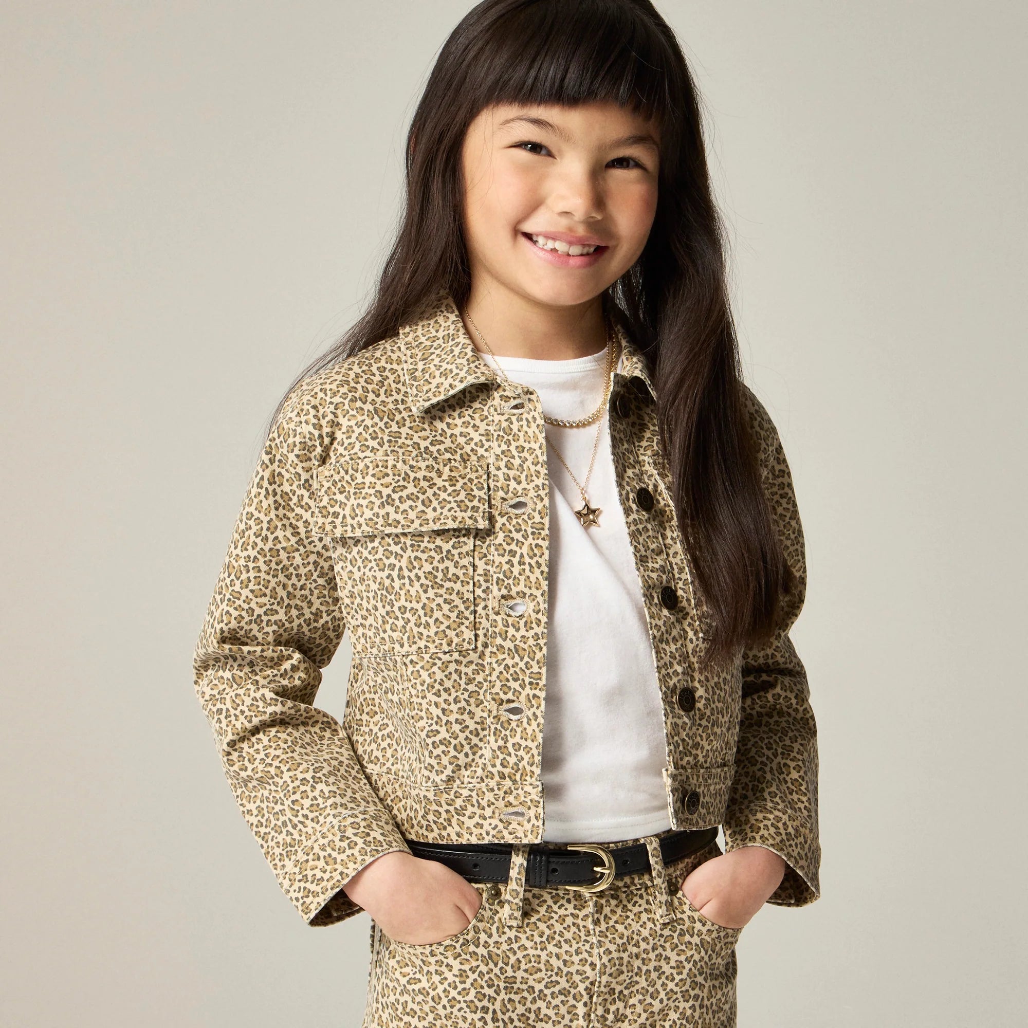 A denim jacket with major cat-itude. . .She'll love throwing on this bold, between-seasons layer complete with sleek patch pockets and a classic fit. The best part: We made matching skirts for the purr-fect printed look.