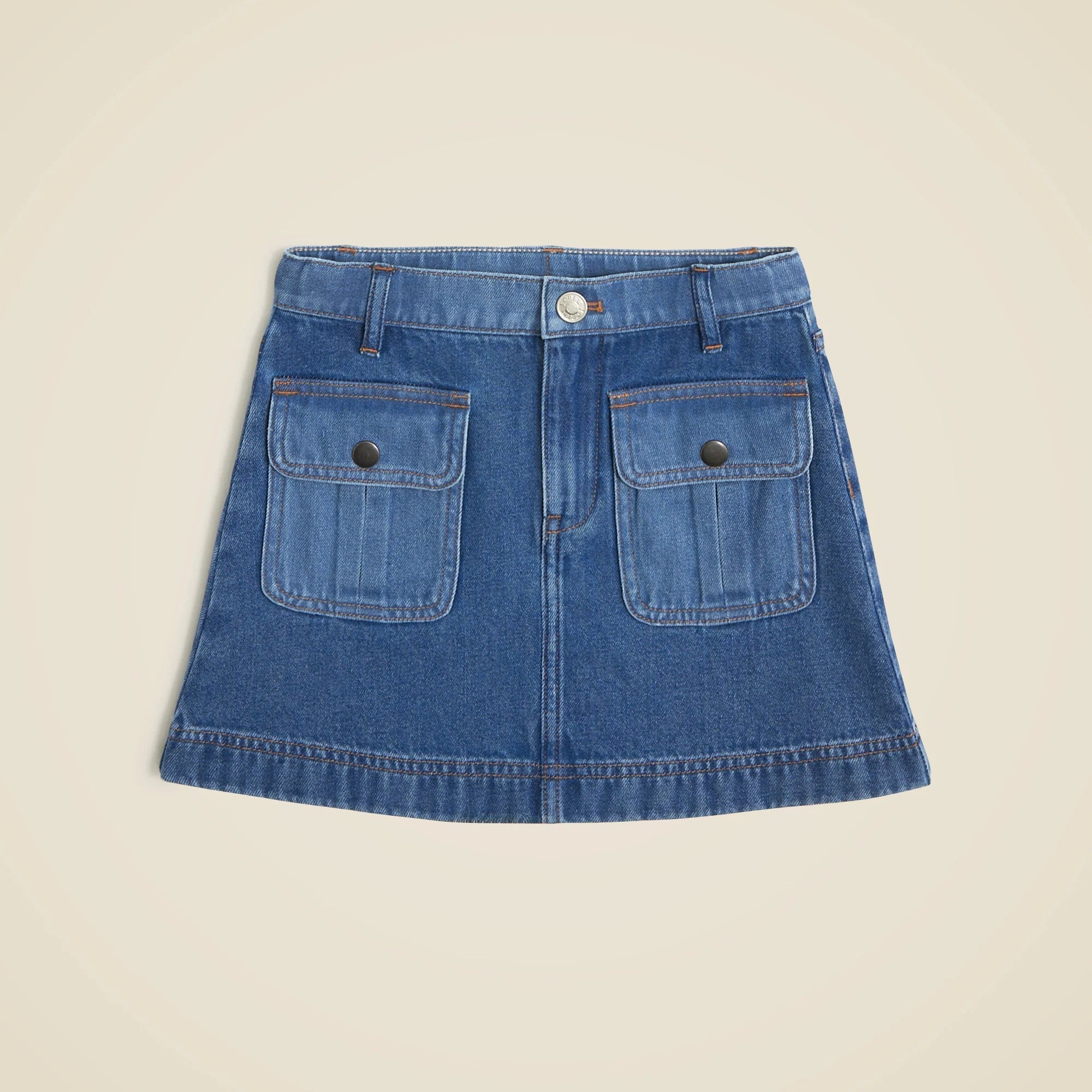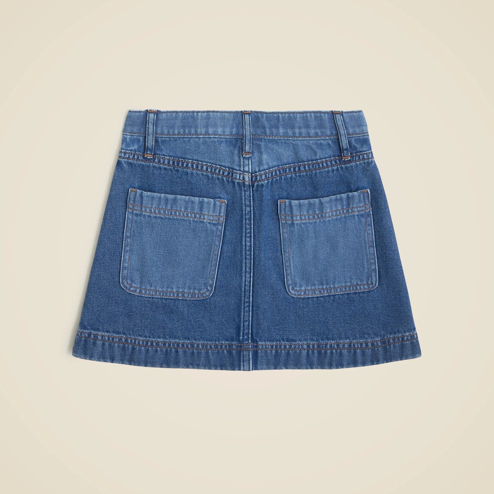 A two-tone skirt that's totally cool. . .This lightweight everyday style is made from Mom's drapey denim fabric, which has the classic look of denim without any of the stiffness. (In other words, it's totally jean-ious.) Bonus: the roomy patch pockets!