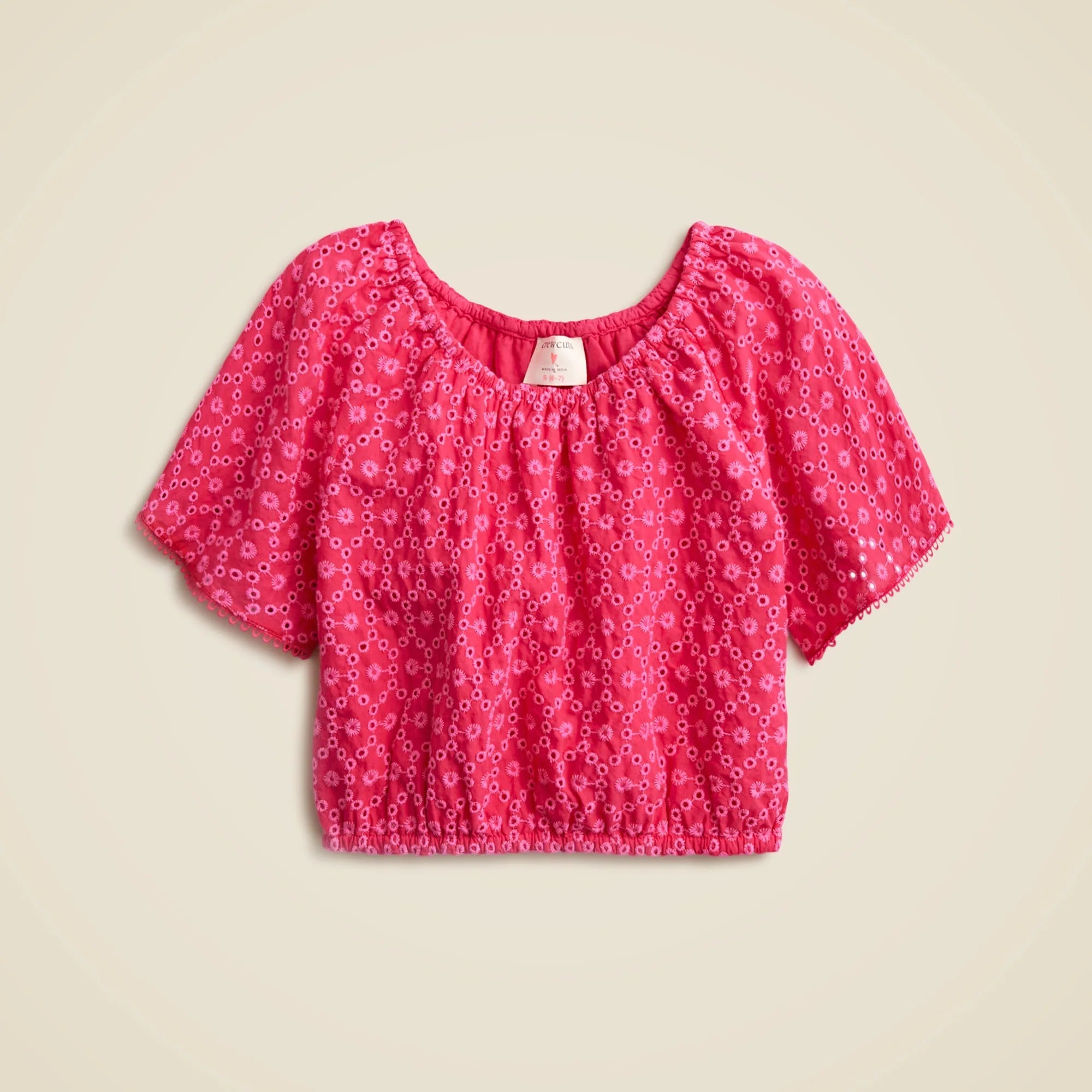 It's officially eyelet season, and we're celebrating with some of our most special styles yet. Case in point: This pretty, cropped top with shirring along the neck and waist. P.S. Pair it with the matching skirt for a sweet spring-holiday look.