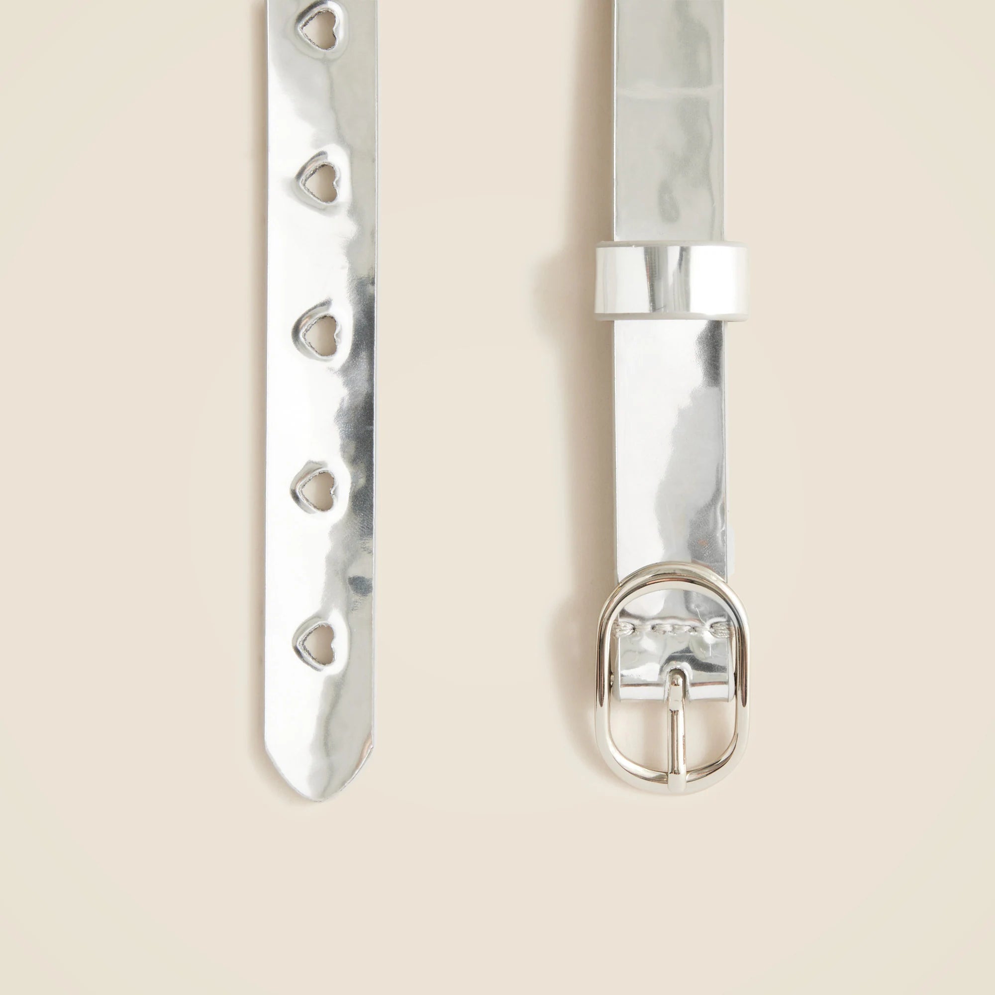 A polished accessory with plenty of charm. This metallic leather belt with heart cutout details is exactly what her belt loops have been missing.