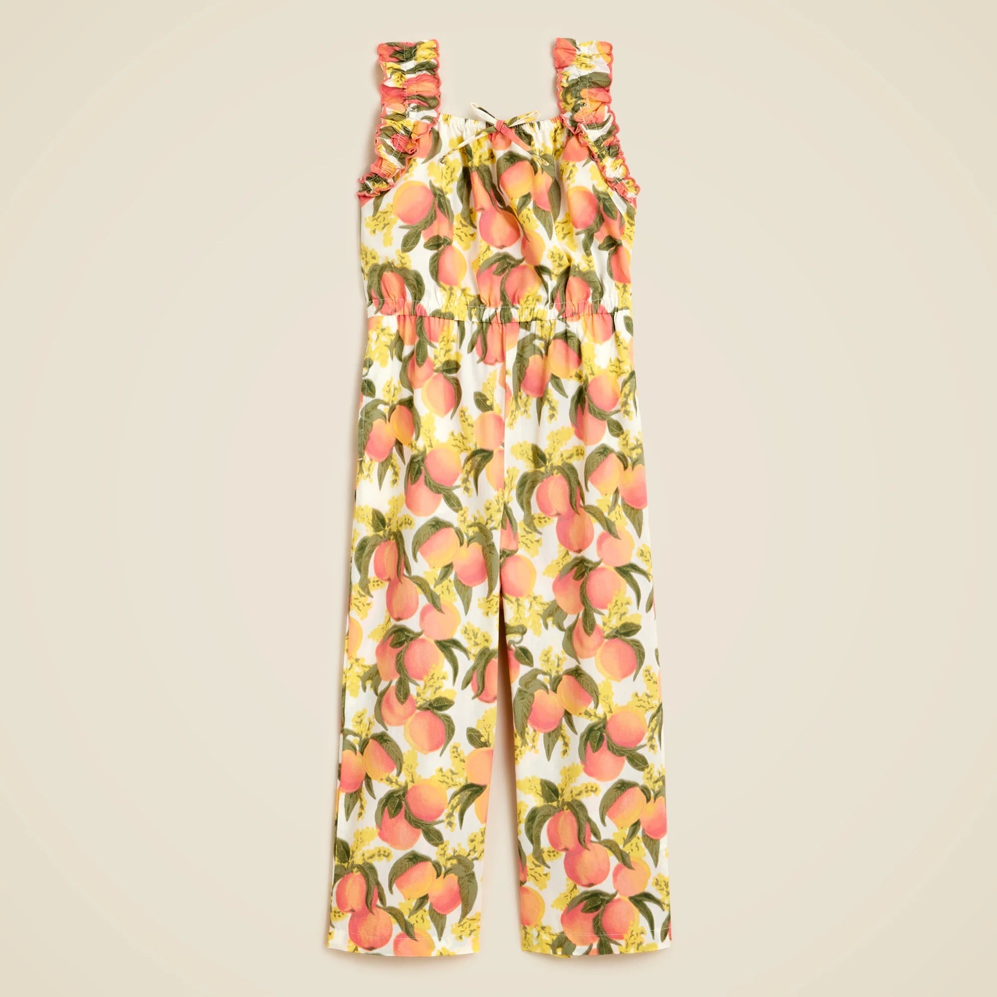 One, done and lots of fun! This ruffle-strap jumpsuit in a colorful peach print is designed for spring dressing at its easiest. P.S. Cue the matchy moments. . . We made coordinating styles for Mom!