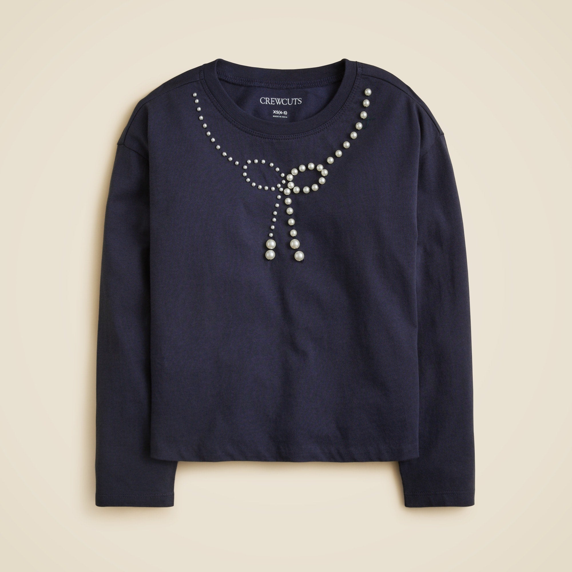 Who says basics have to be boring? This everyday tee gets a fancy-ish update with embroidered pearls and sequins in a pretty bow shape.