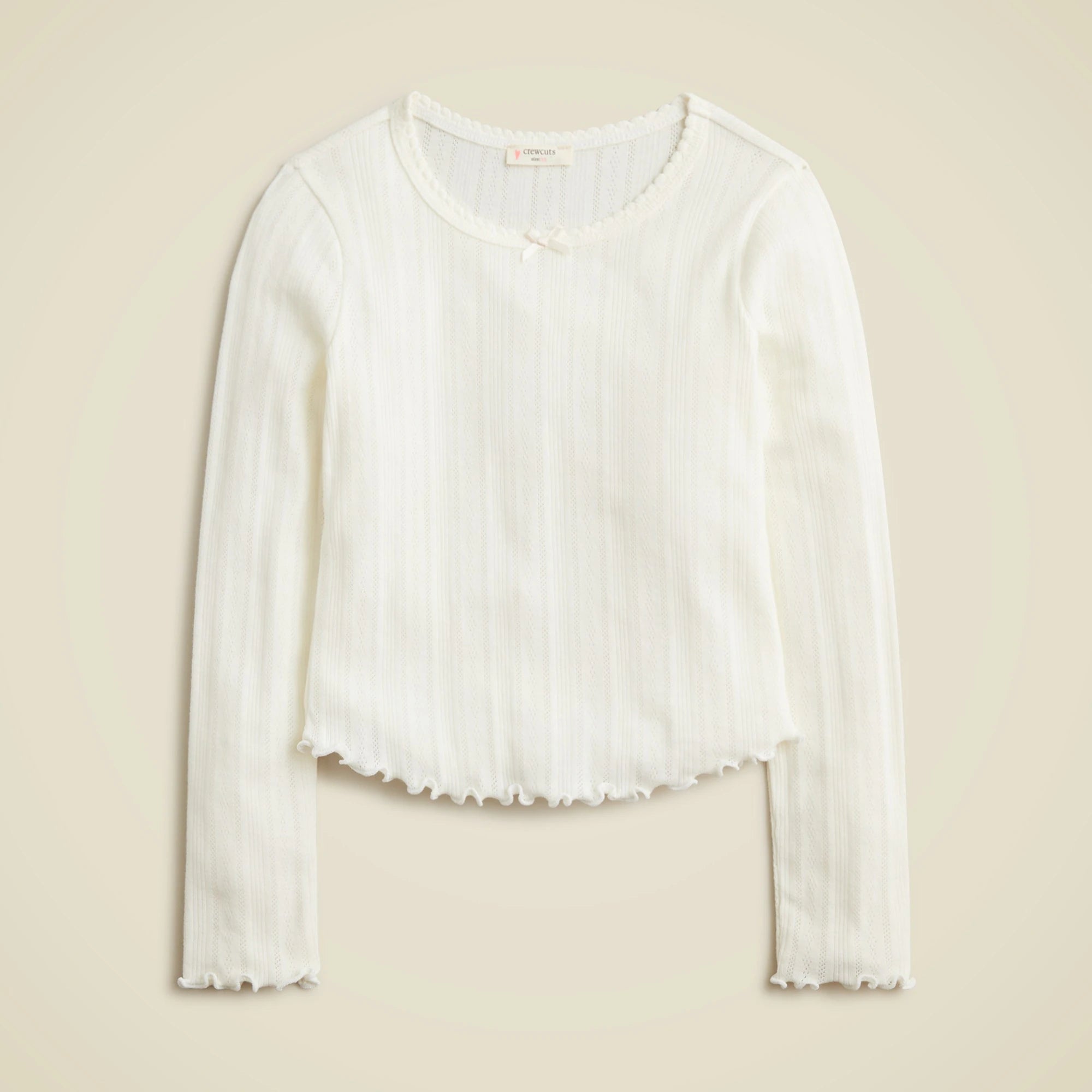 Pretty, easy! This lightweight pointelle-knit tee with lettuce-trim details is as cute as it is comfy. Layered or worn by itself, it'll give all her casual outfits an instant upgrade.