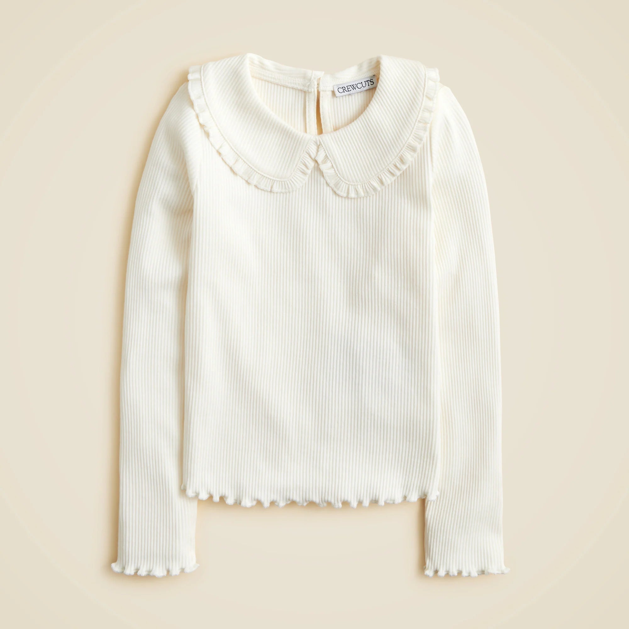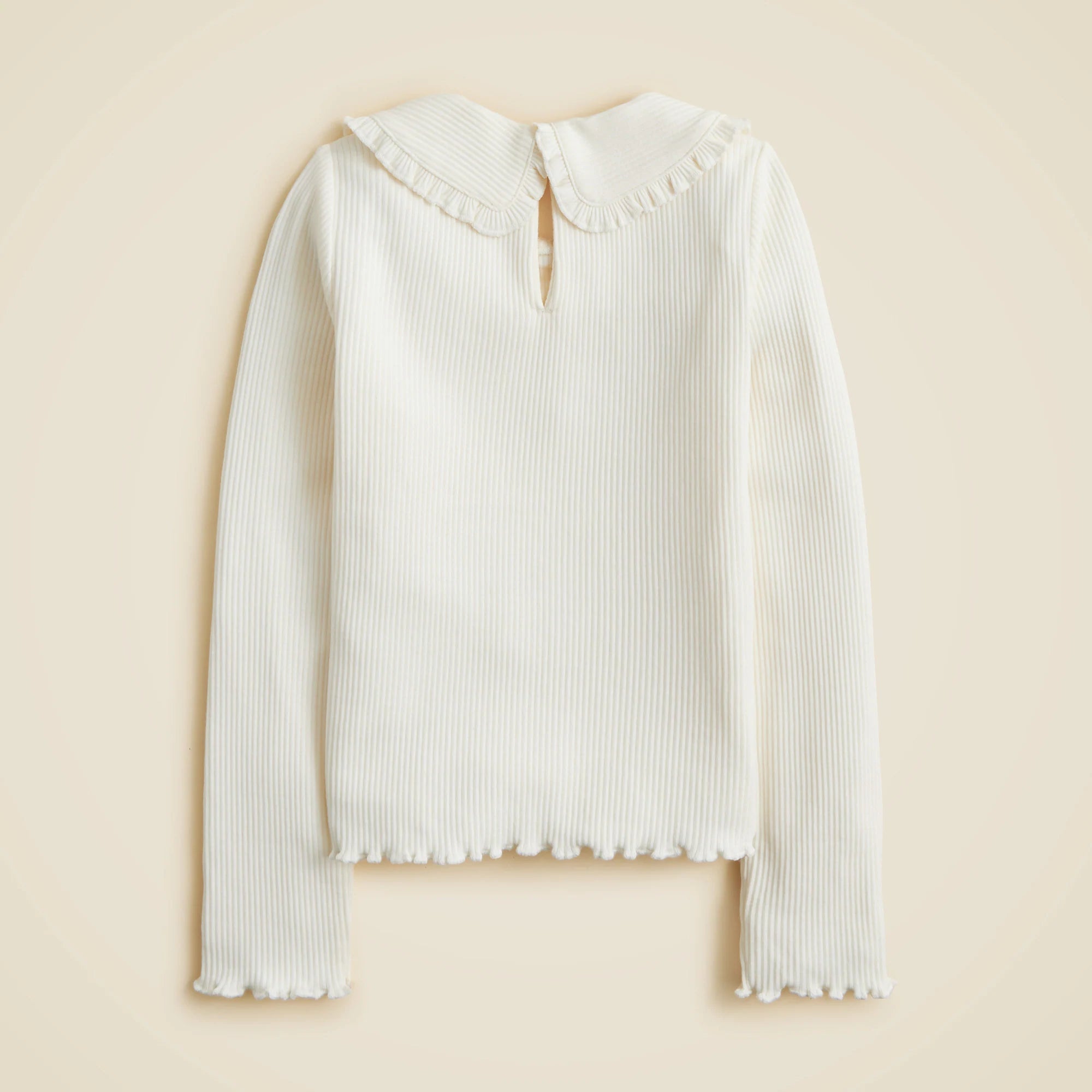 Girls' long-sleeve ruffle-collar top in vintage rib