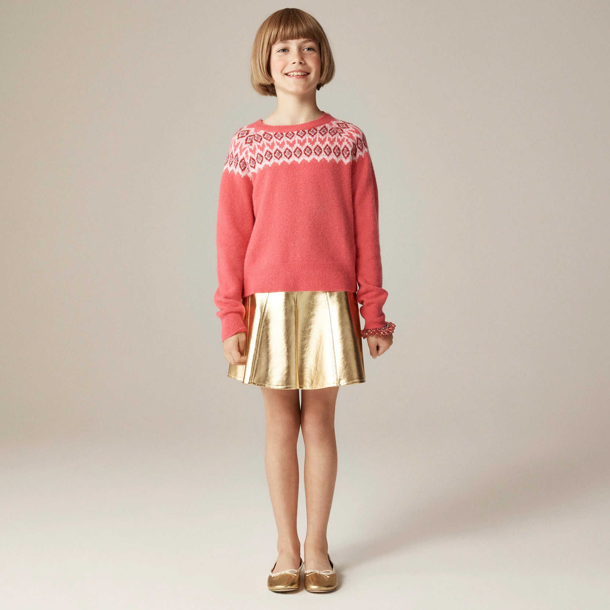 Girls' metallic Fair Isle sweater in Supersoft yarn