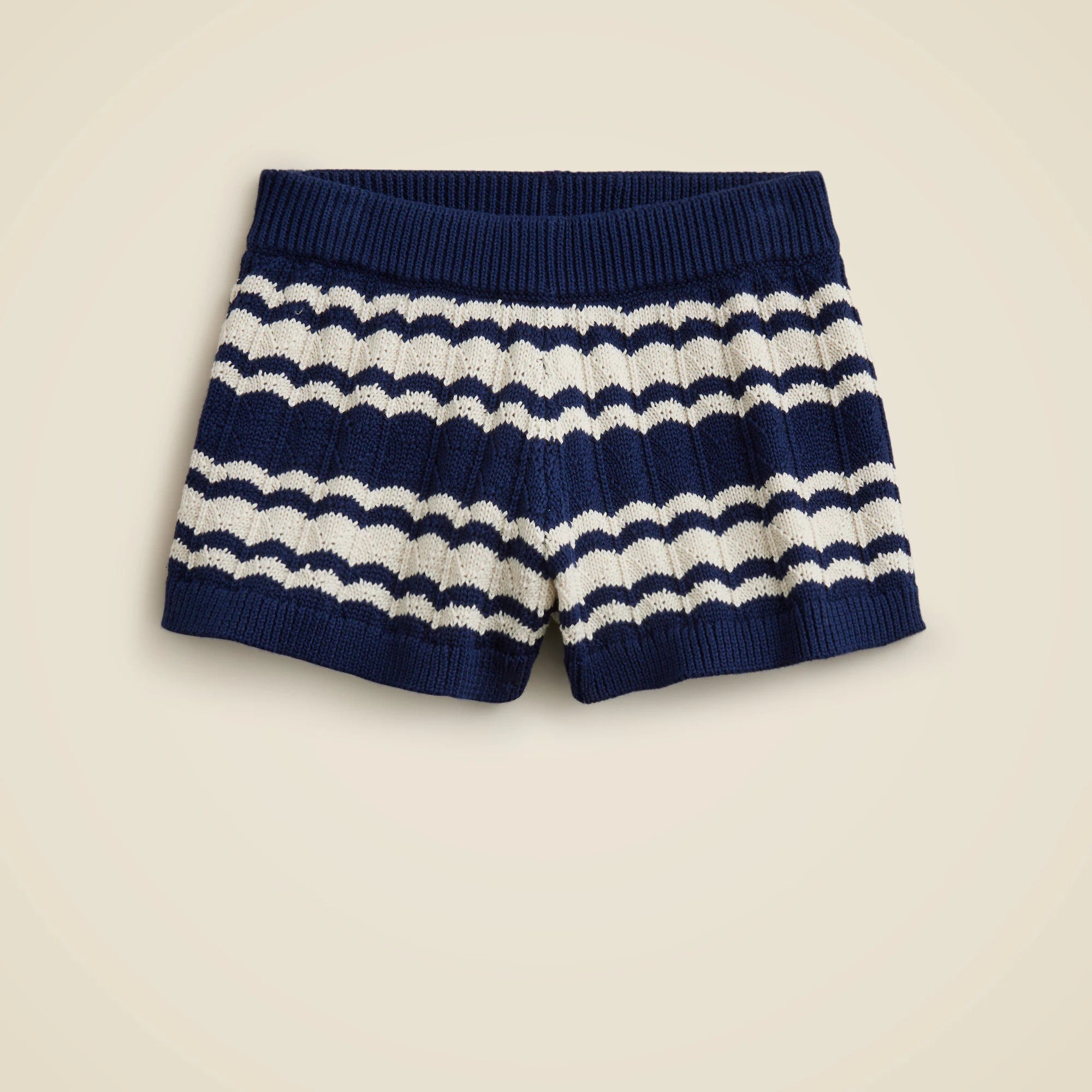 The comfort of a sweater meets the ease of a short. This pull-on style is perfect for all her laid-back summer hangs, in a striped knit with breezy pointelle details. Plus, it pairs perfectly with the matching pointelle top.
