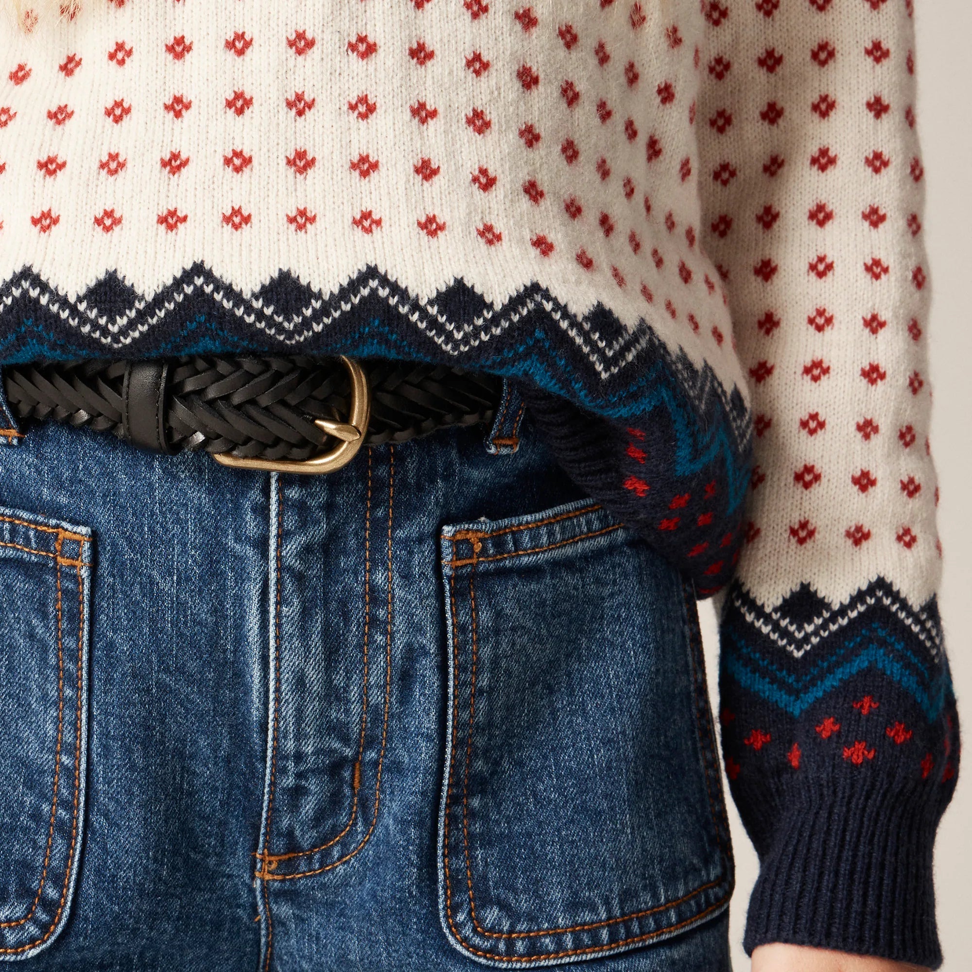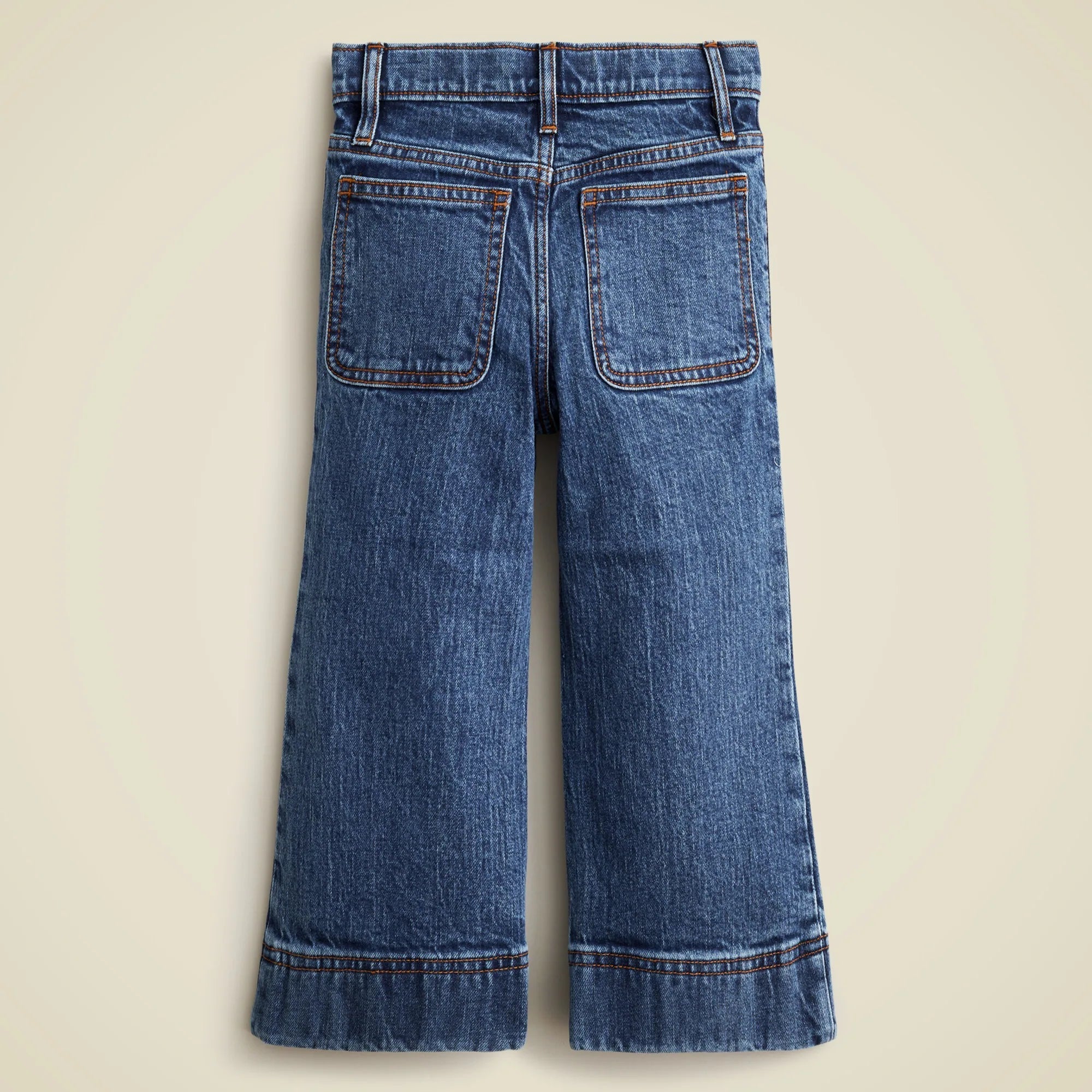Mom's favorite denim fit, with a nautical twist. Featuring front patch pockets, a wide-leg and a longer bottom cuff, these trouser-inspired jeans will instantly elevate any look. Plus, they're crafted with a hint of stretch! By buying cotton products from J.Crew, you're supporting our investment in Better Cotton's mission to help cotton communities survive and thrive while protecting and restoring the environment. This product is sourced through a system of mass balance and therefore may not contain Better Cotton.