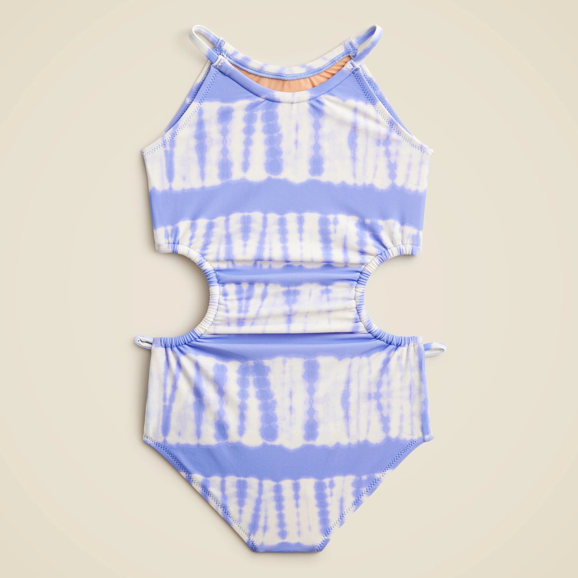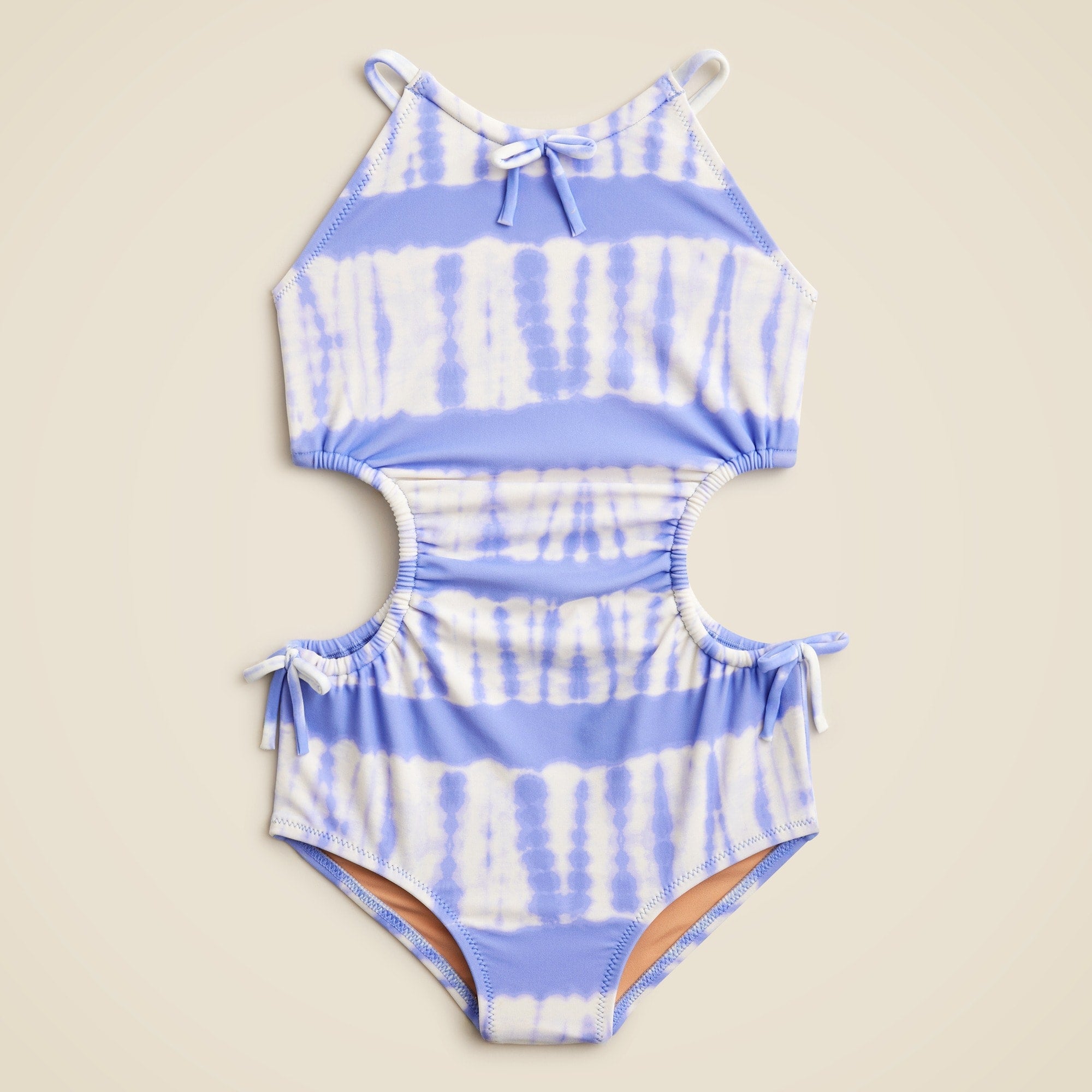 A swimsuit that's guaranteed to make a splash. . .This printed swimsuit makes a cool statement with cutouts on the sides and bow-tie details to adjust their fit,