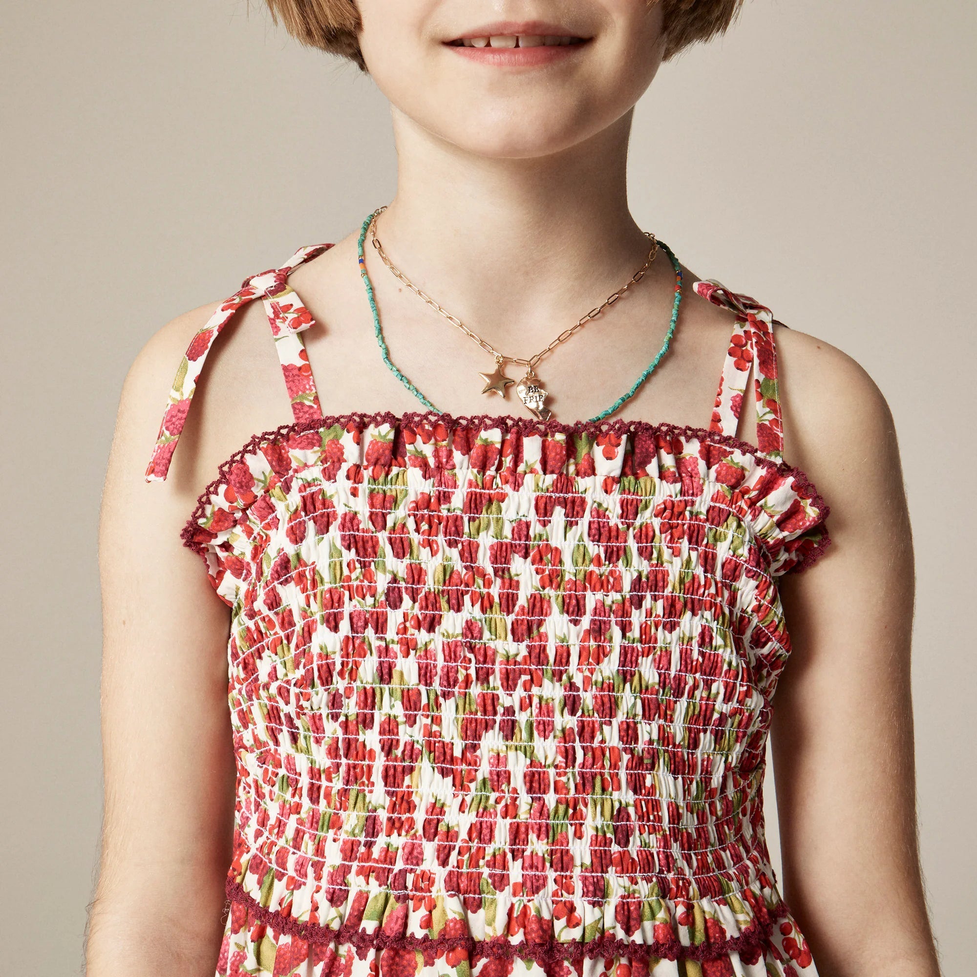 Cue the summer sweetness. . . This smocked dress, featuring swingy tiers, shoulder ties and our seasonal raspberry print, is (almost) good enough to eat. Even better: We made matching styles for Mom!