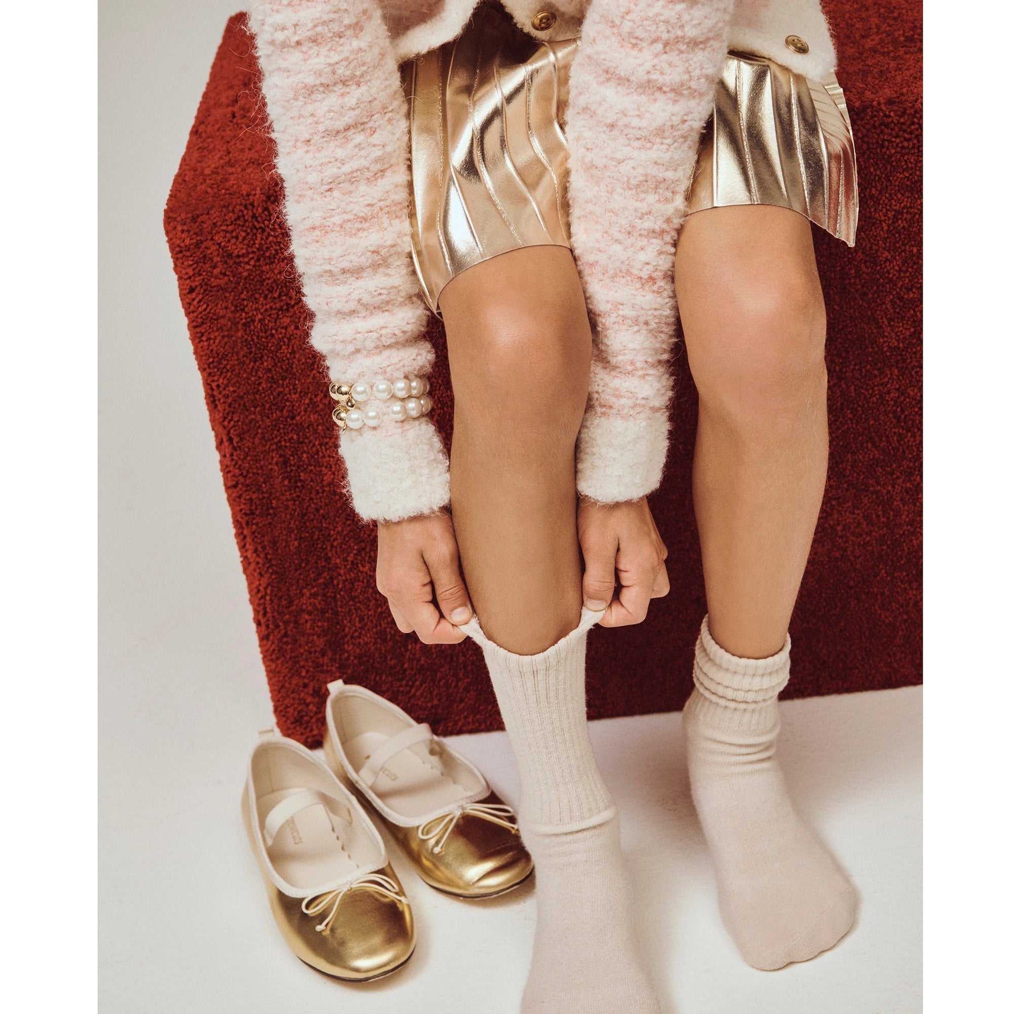 We updated this classic ballet flat with a Mary Jane strap she can wear over or under. Two styles in one, what could be better?
