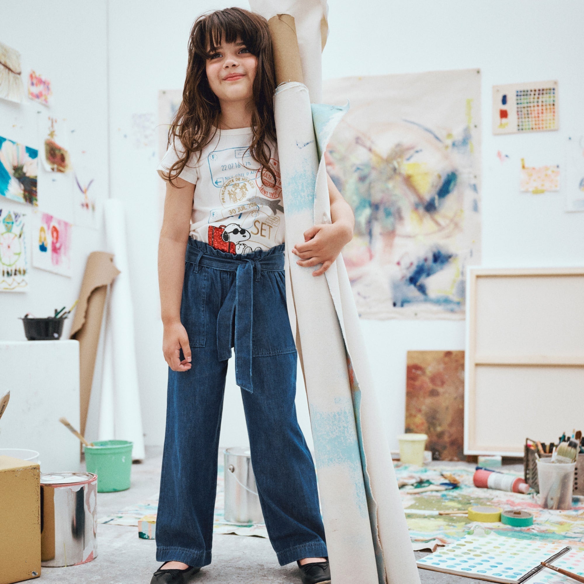 A pull-on pair with plenty of polish. This elastic-waist style features a removable tie belt that's super-easy. Plus, it's finished in Mom's drapey denim fabric, which has the classic look of denim without any of the stiffness. (In other words, it's totally jean-ious.)