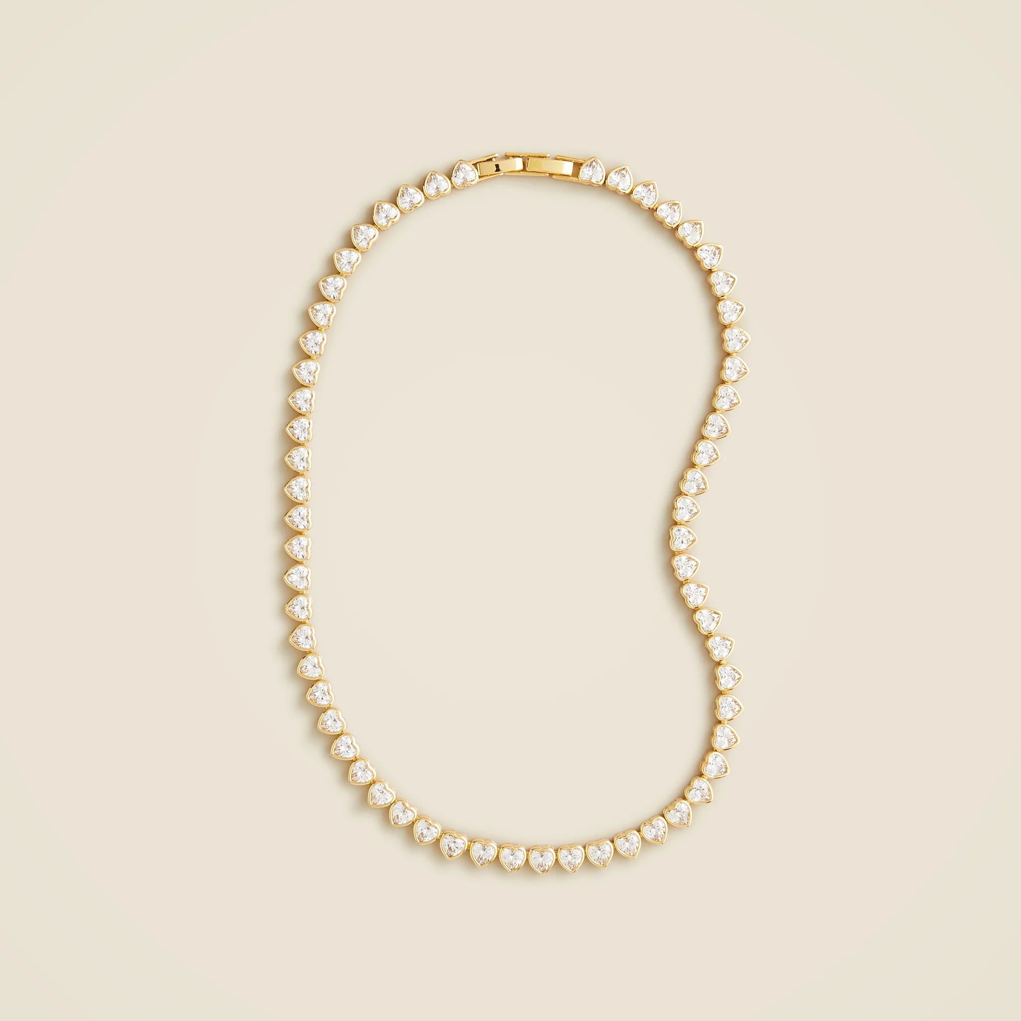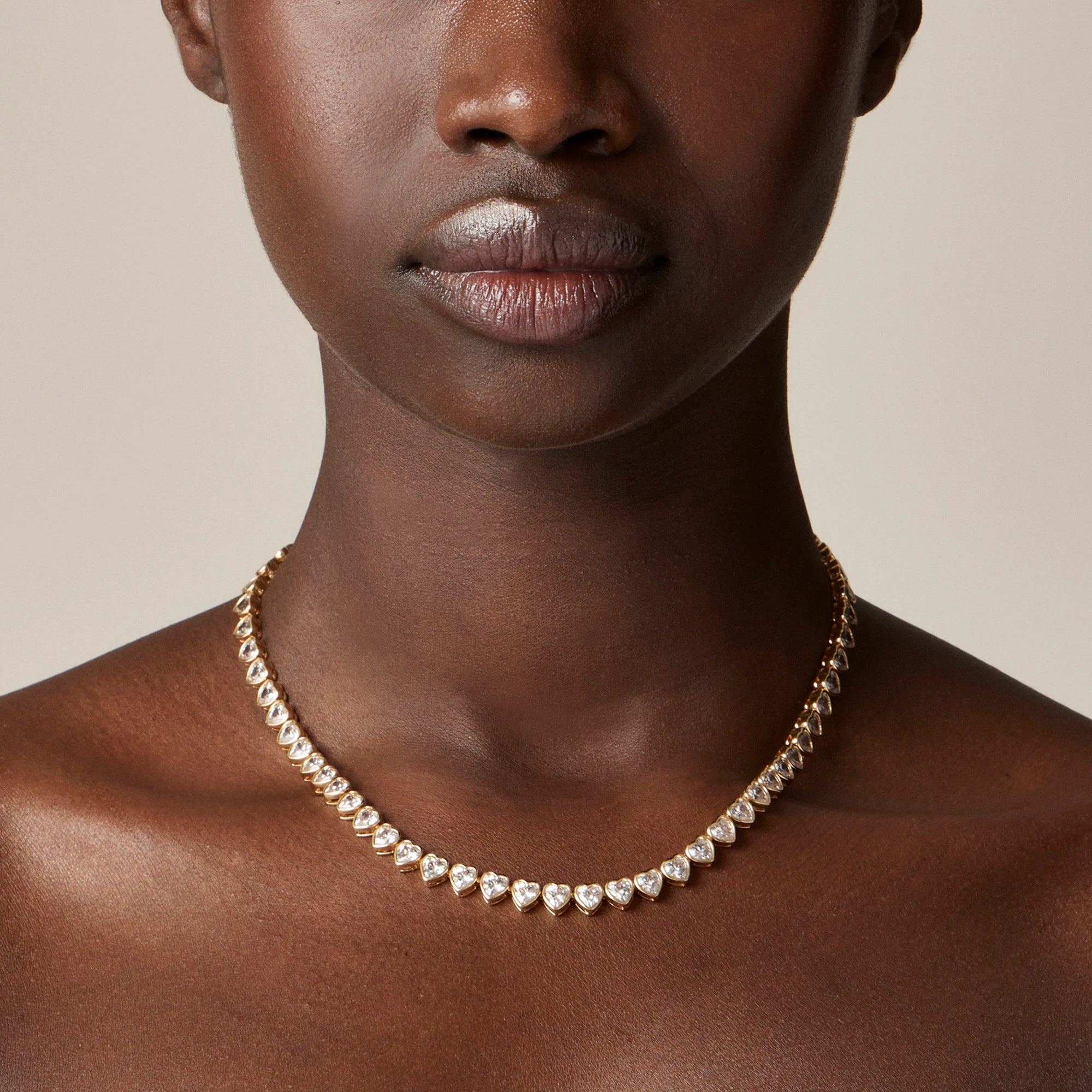 A new necklace to absolutely love. . .This heart tennis necklace features sparkling cubic zirconia stones and makes the perfect statement on its own or layered with other styles. Want to keep your jewelry looking like new? We recommend removing it before showering or exercise and putting it on after applying hair products or perfume. To clean your pieces, polish them with a soft, dry cloth—and when not wearing, store them in a pouch or jewelry case.