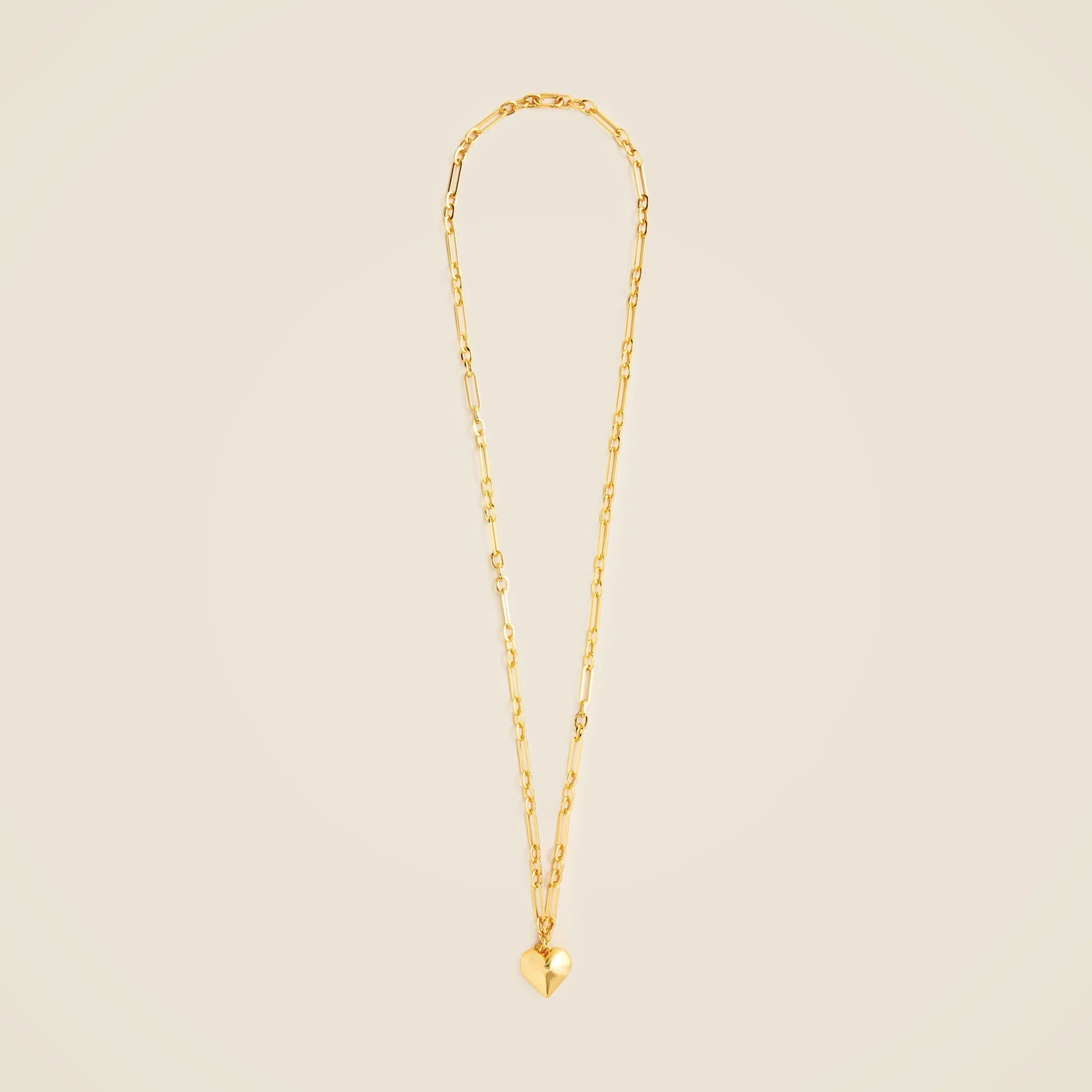 A statement necklace with lots to love. Our heart-shaped style makes the perfect gift for you or your other half. Feel-good fact: This style was made using eco-friendly recycled-brass casting. Want to keep your jewelry looking like new? We recommend removing it before showering or exercise and putting it on after applying hair products or perfume. To clean your pieces, polish them with a soft, dry cloth—and when not wearing, store them in a pouch or jewelry case.