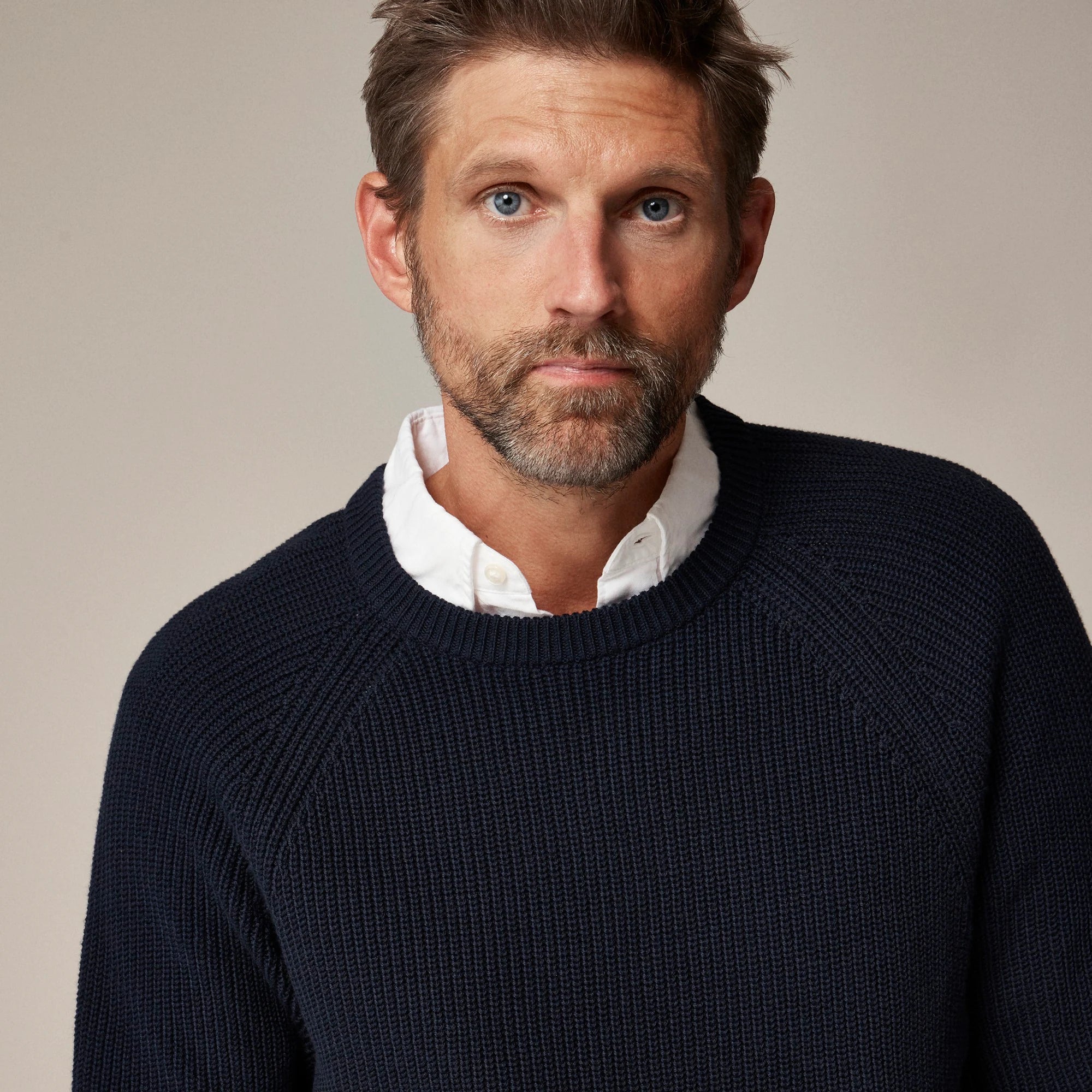 The sweaters that were ubiquitous in the '80s and '90s are here again, knit with raglan sleeves and a textured ribbed stitch in a dense cotton that's simultaneously sturdy and breathable. Inspired by our vintage catalogs, we've adopted the name, "heritage cotton," for this particular fabric. It's easy to wear, comfortable and it looks good with just about everything; the compact knit has a dry handfeel and just the right amount of structure.