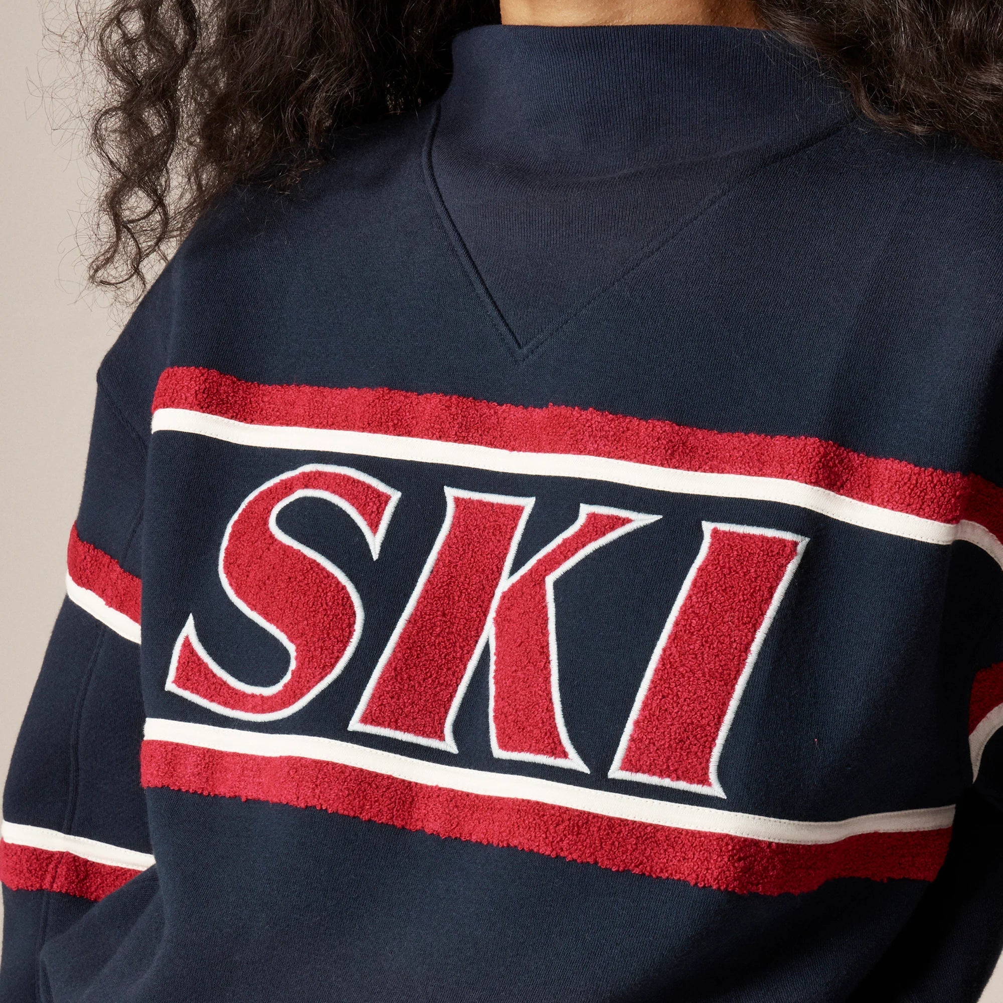 A nod to ski season, in a cozy lounge fabric. This style comes in a mockneck silhouette with an embroidered "Ski" graphic across the front. Plus, it's crafted from our heritage fleece, a soft fabric with the weight and feel of vintage styles, made for you to wrap up in year-round.