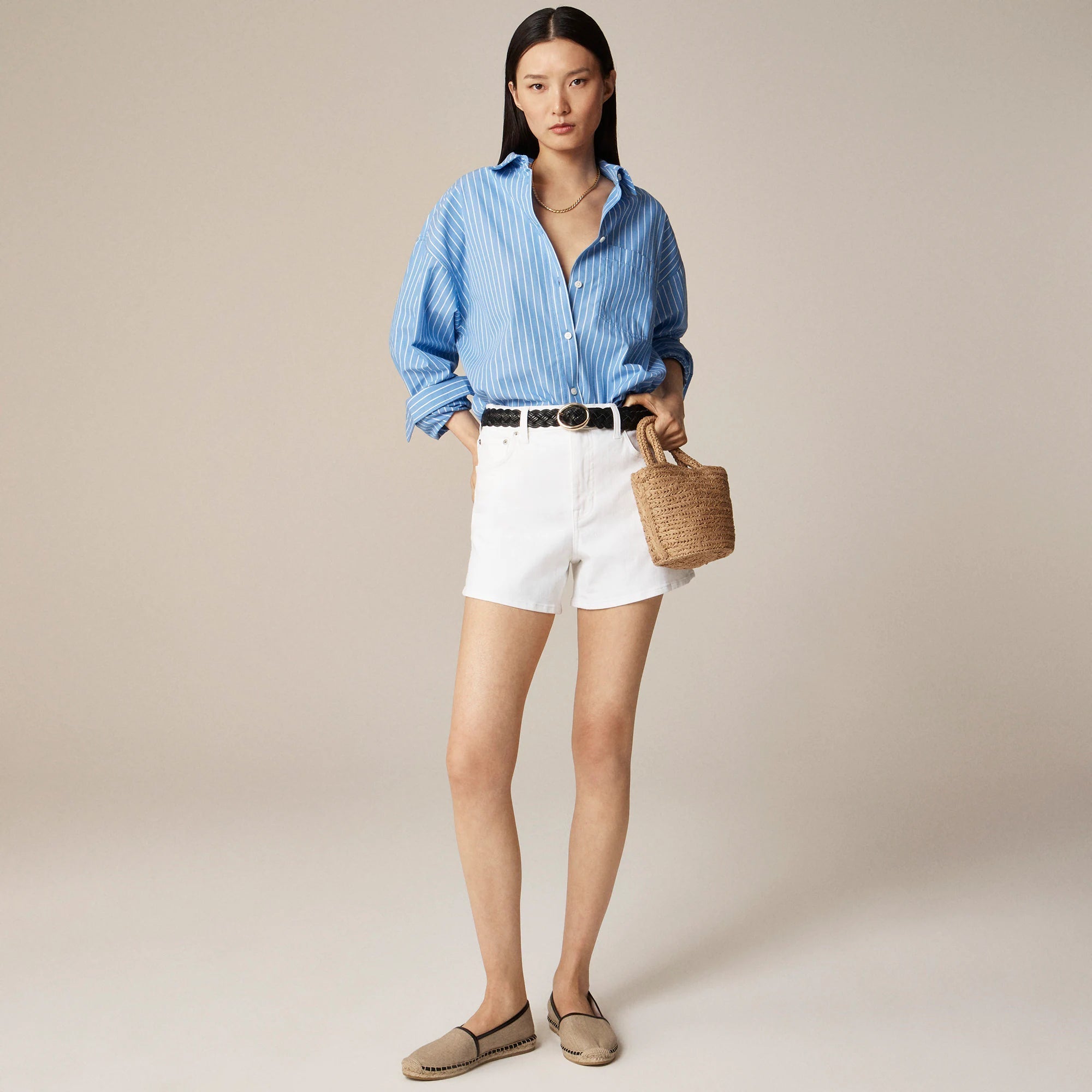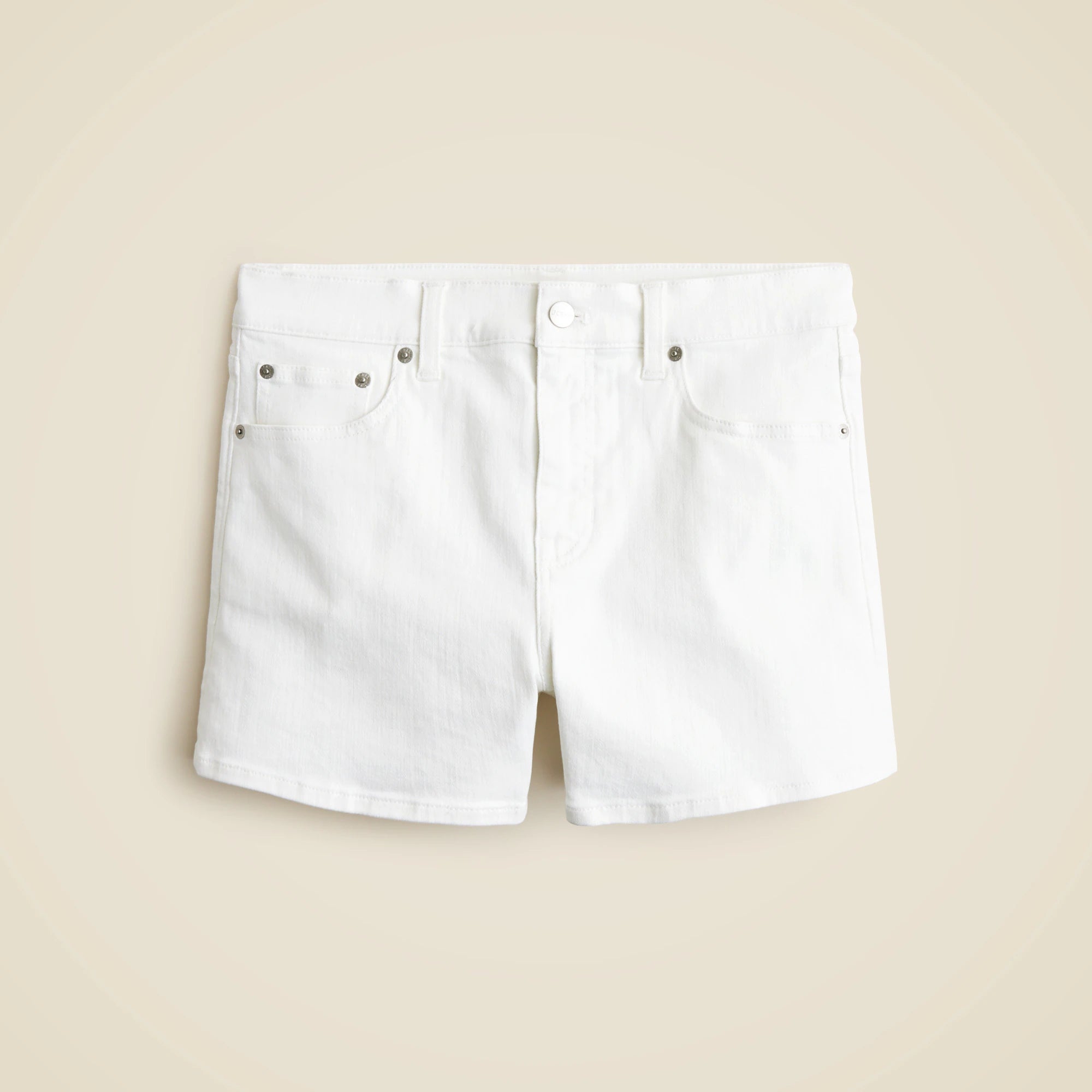 Everyone needs a pair of perfectly fitting white jean shorts. Meet yours. This easy everyday pair comes with a comfortable high rise and a 4" inseam. Plus, it's crafted with just a touch of stretch, so it's structured, durable and designed for all-day comfort.