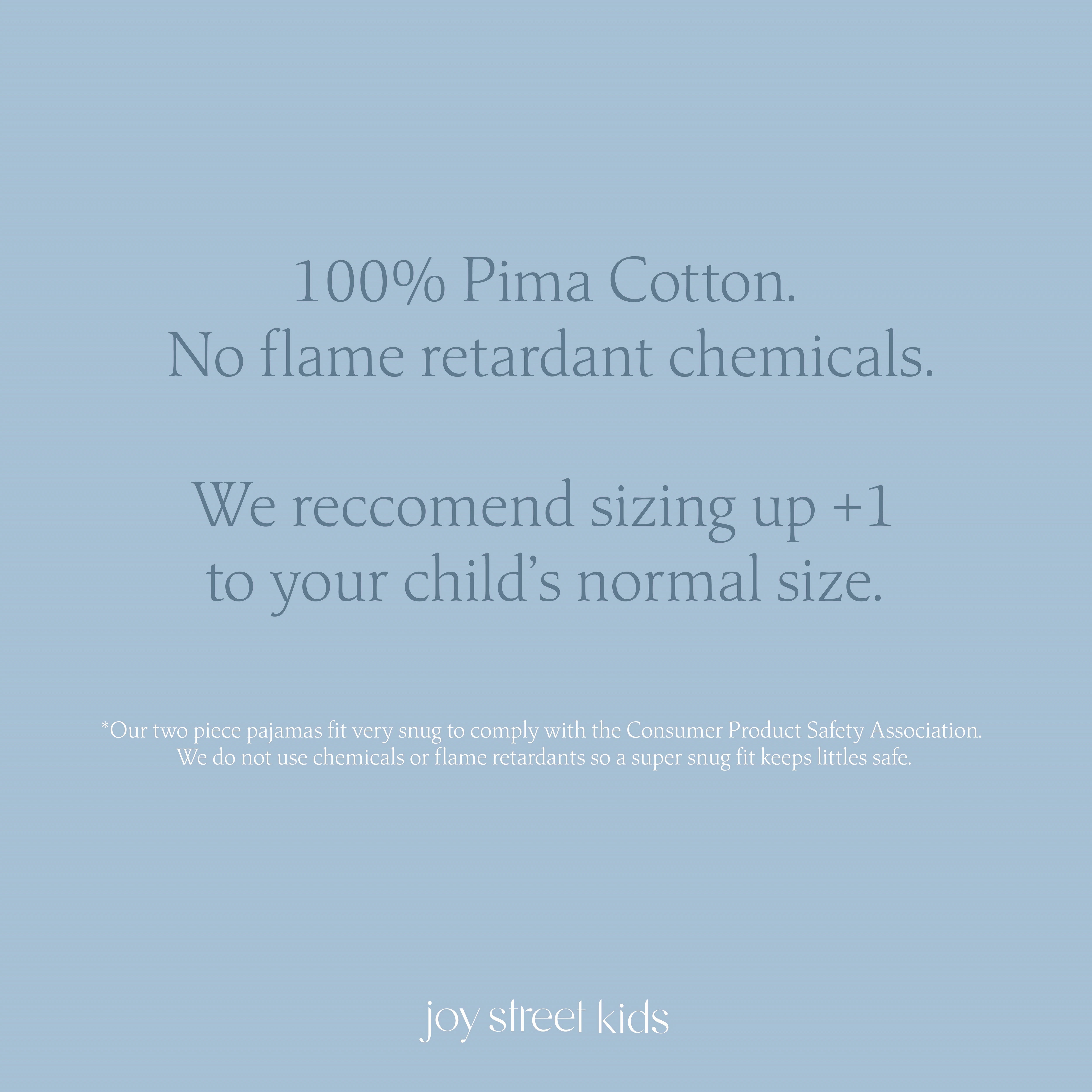 Joy Street Kids's pajama and baby collection features classic and understated geography and thematic prints. Artist, founder and mom, Eliza Ferrel, draws all the motifs herself and prints in small batches on the softest, 100 percent Peruvian Pima cotton. Grab your sun hat and shades as you explore our Palm Beach, Florida-printed kids' pajamas. From polo to palm trees, have fun exploring all of the iconic Palm Beach renderings in Eliza's Palm Beach print!