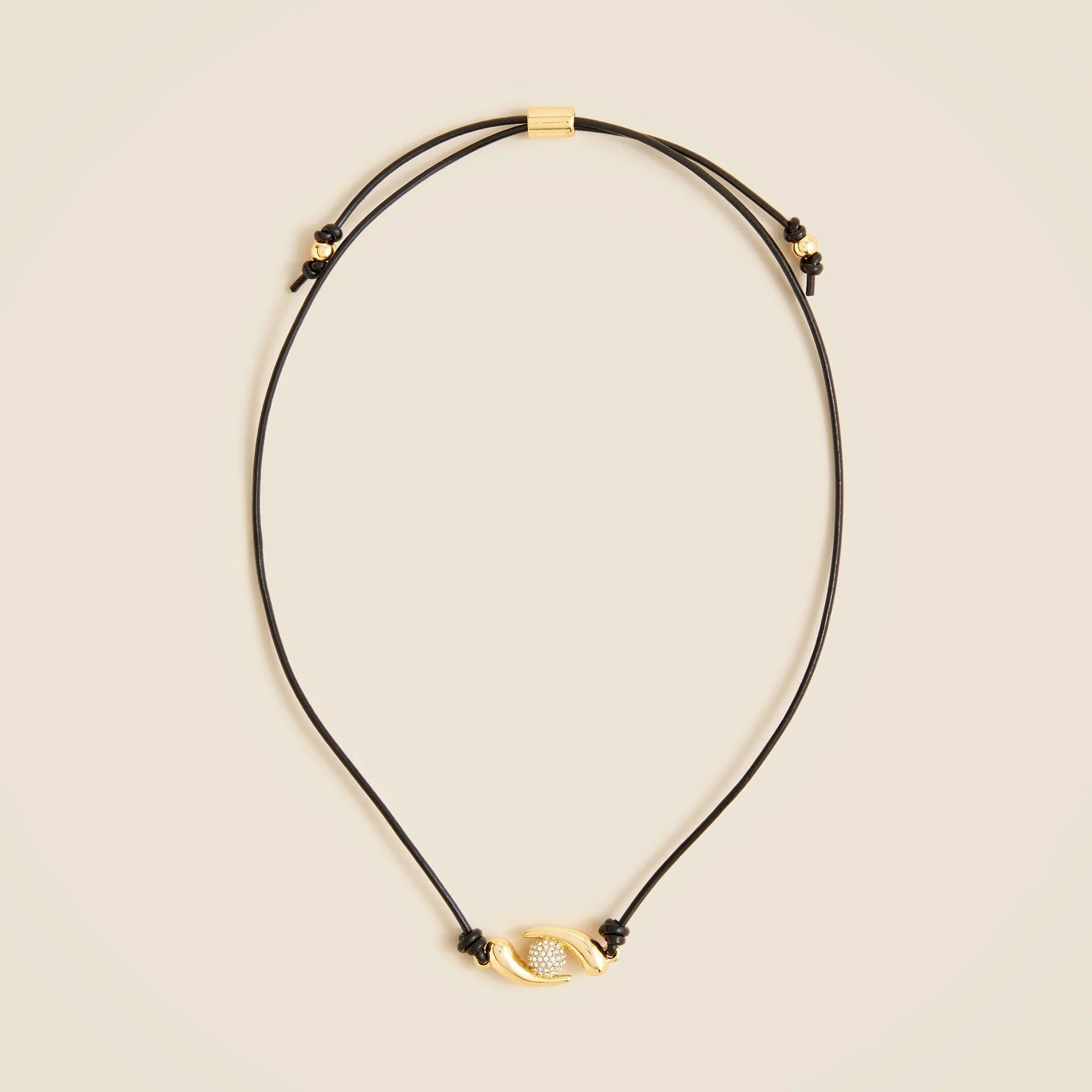 Introducing KHIRY X J.Crew. We collaborated with Jameel Mohammad, founder and designer of Khiry, on a special jewelry capsule that channels the beauty, art, heritage and culture of the African diaspora. A fresh take on Khiry's dimensional styles, this adjustable-length necklace features a sleek leather cord and a sculptural pavé crystal pendant. Plus, each style is crafted from gold-plated recycled brass with a polished finish.