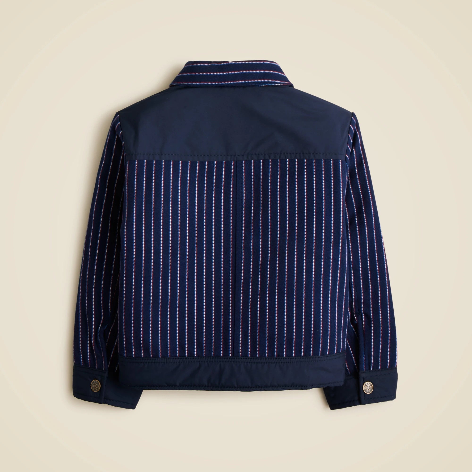 This jacket is a design-team favorite for many reasons. . . With a pinstripe pattern in our lightweight (yet super-fuzzy) faux-wool fabric, it's the coolest statement layer he can wear from season to season.
