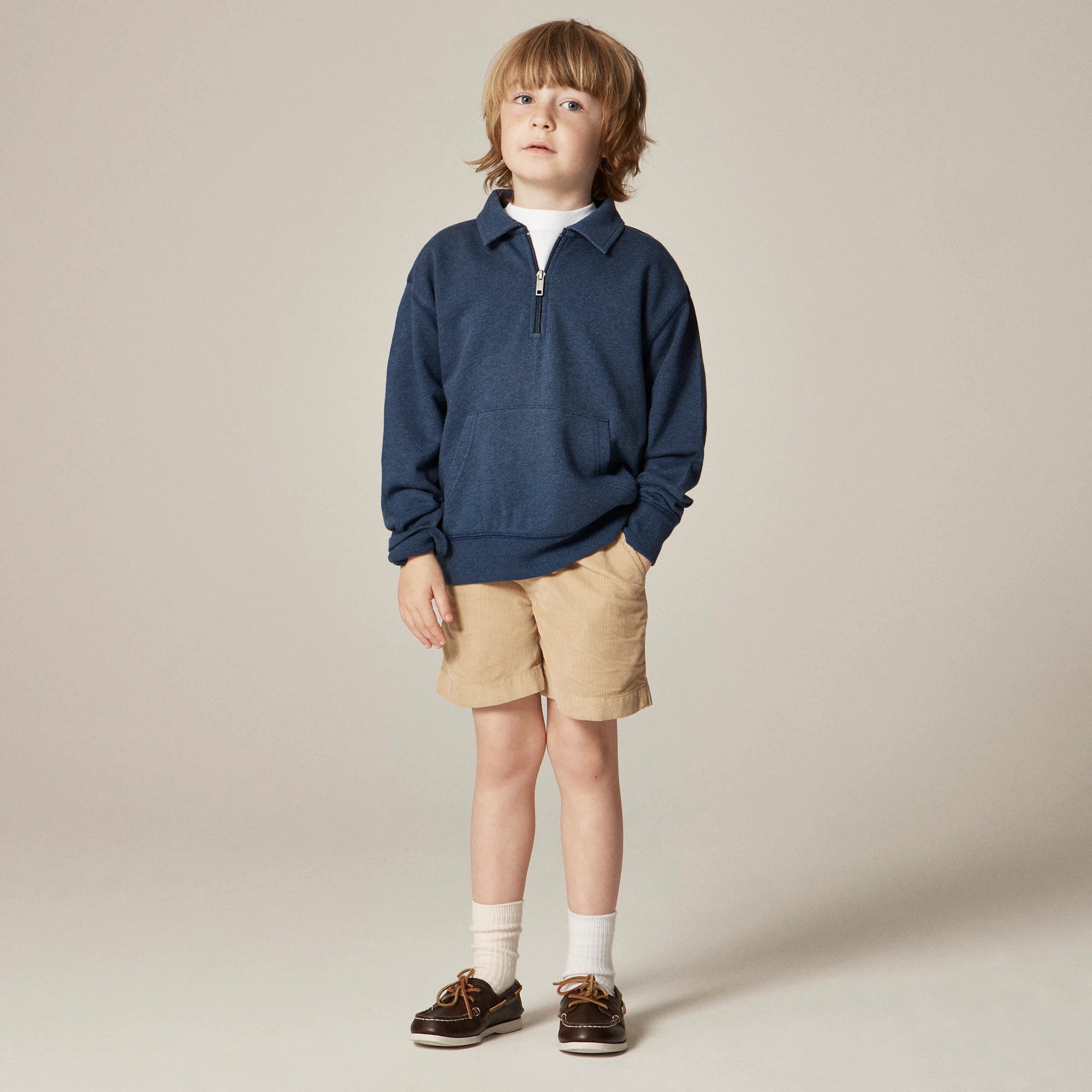 The perfect between-seasons pullover. What to wear when it's not quite jacket weather: this plush terry half-zip with a roomy kangaroo pocket and sporty collar. With endless ways to wear it, it's an easy alternative to their go-to sweatshirt! Please note: The pattern placement in our graffiti green bandana shade will vary from style to style.