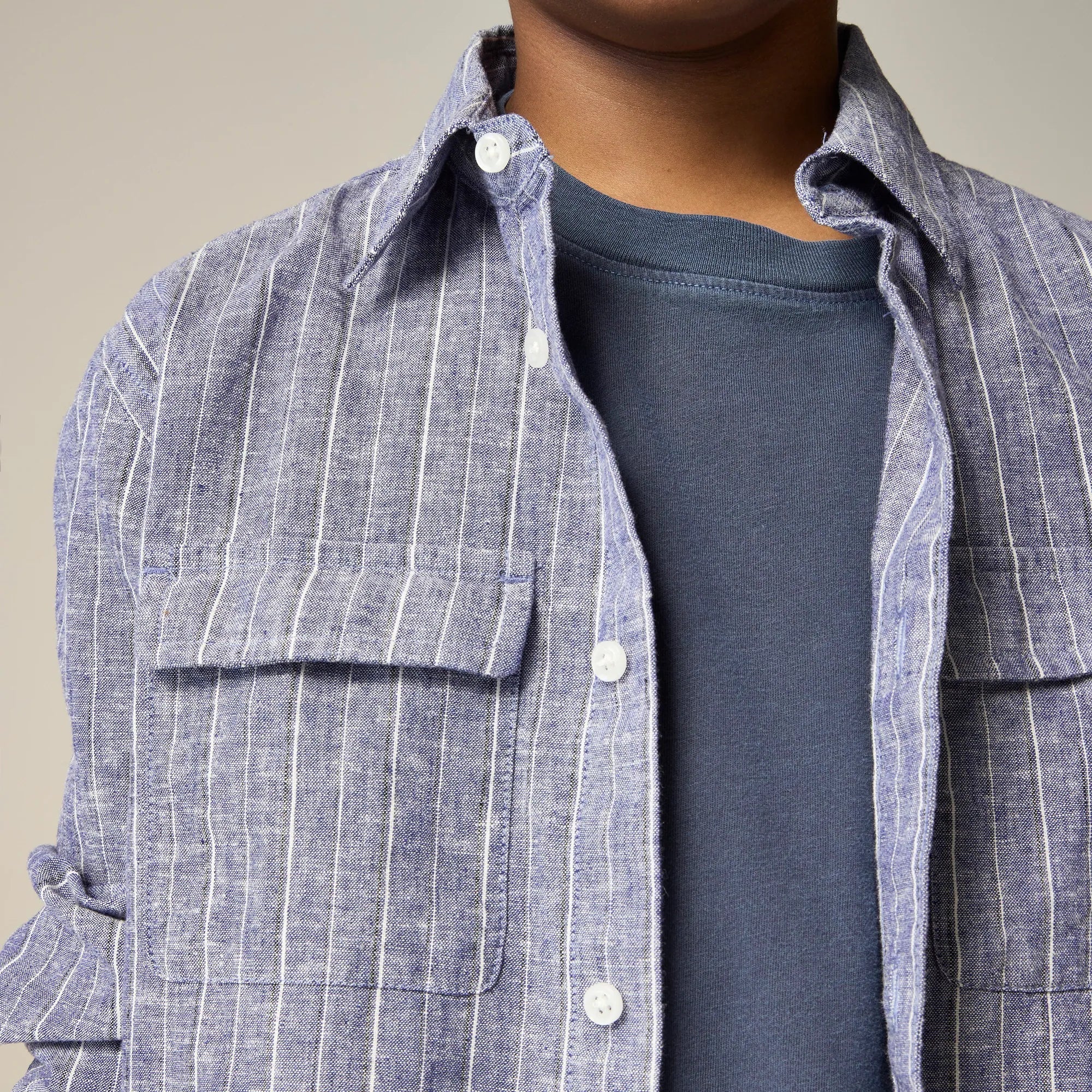 This camp shirt is a little different from the pack. . .It's made with a cool double-pocket design and a blend of cotton and linen that's super-breathable (aka our version of personal AC).