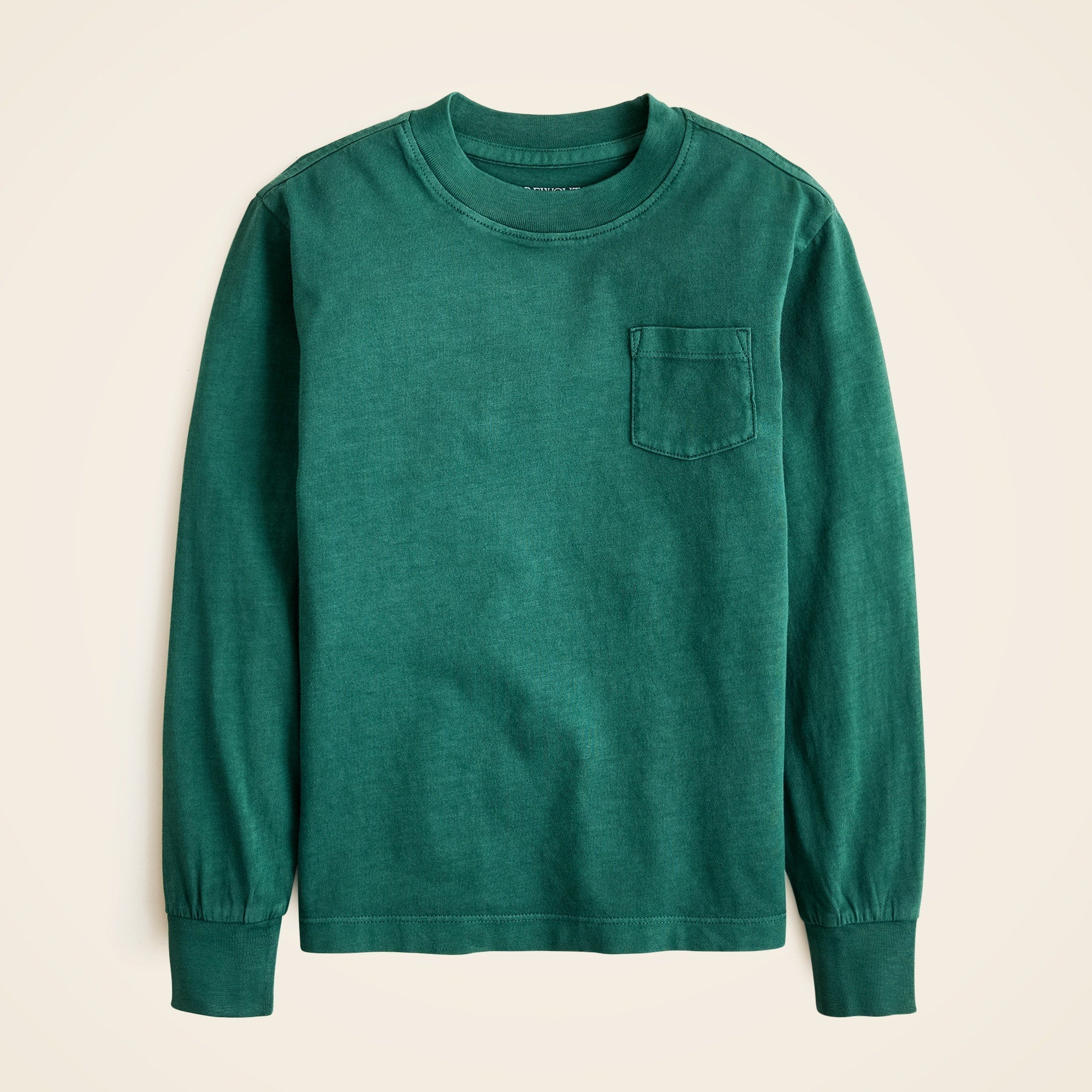 Kids' long-sleeve garment-dyed pocket T-shirt in broken-in-jersey