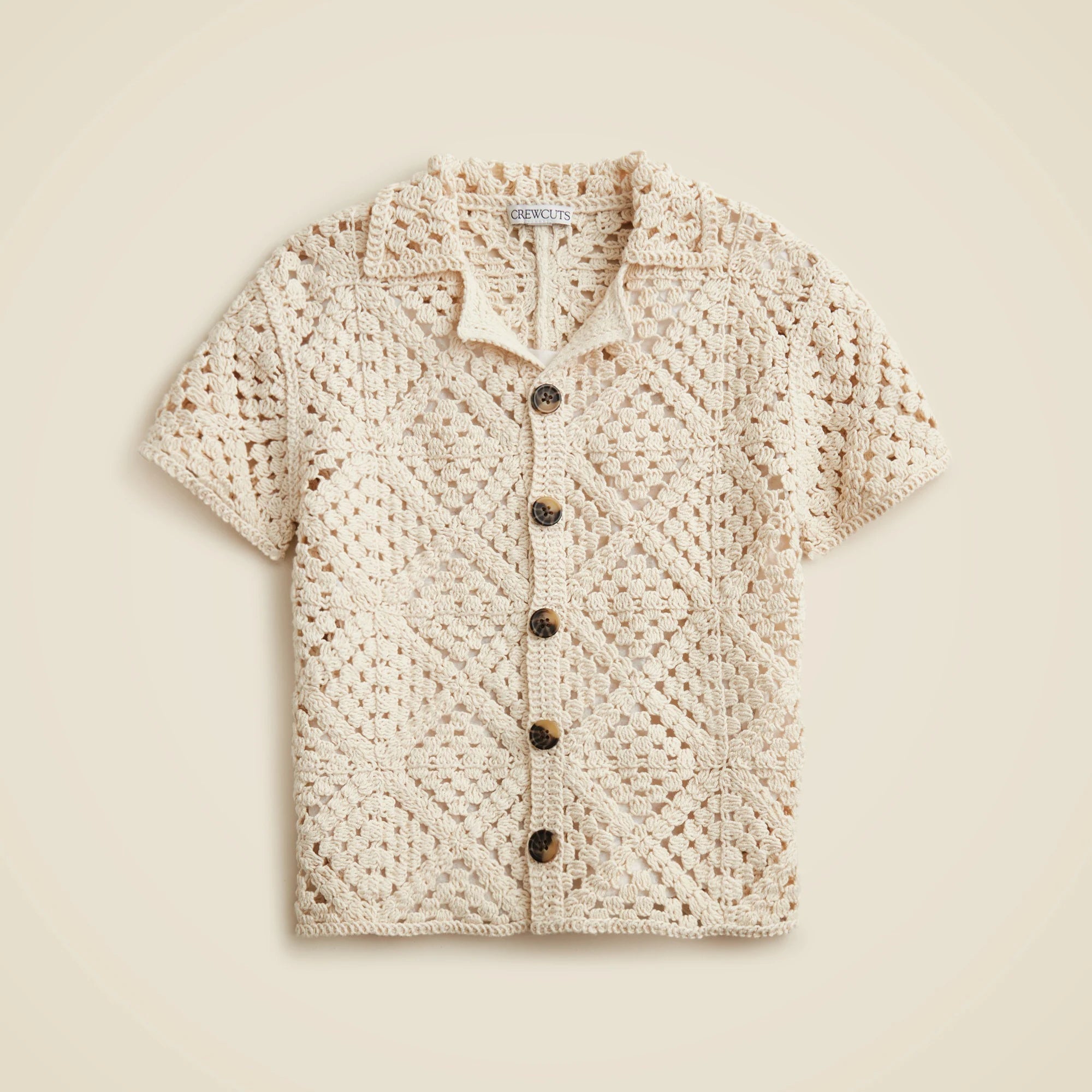 Crochet, their way. Somewhere between a shirt and a sweater, this retro knit top in a diamond pattern is the season's coolest layering piece. It's perfect for all their spring plans, from dressy-ish dinners to breezy beach days.