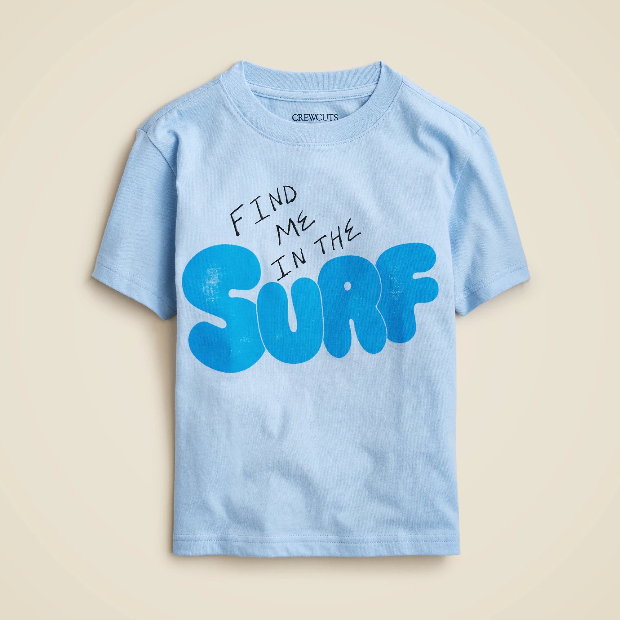 A tee that says it all. . .This graphic style with cool bubble letters is all they need to hang ten.