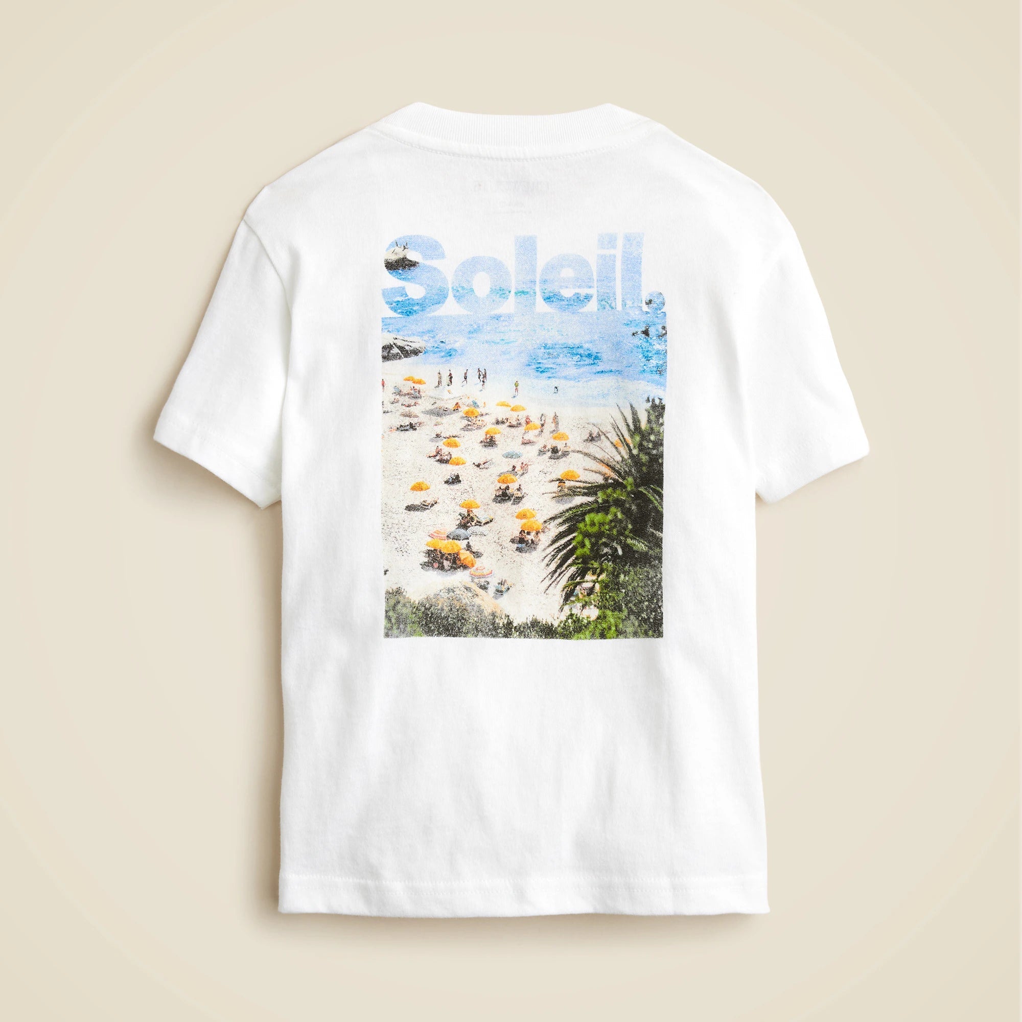 A tee that's picture perfect. This summery style features a cool "Soleil" graphic on the chest with a vibrant beach photo across the back.