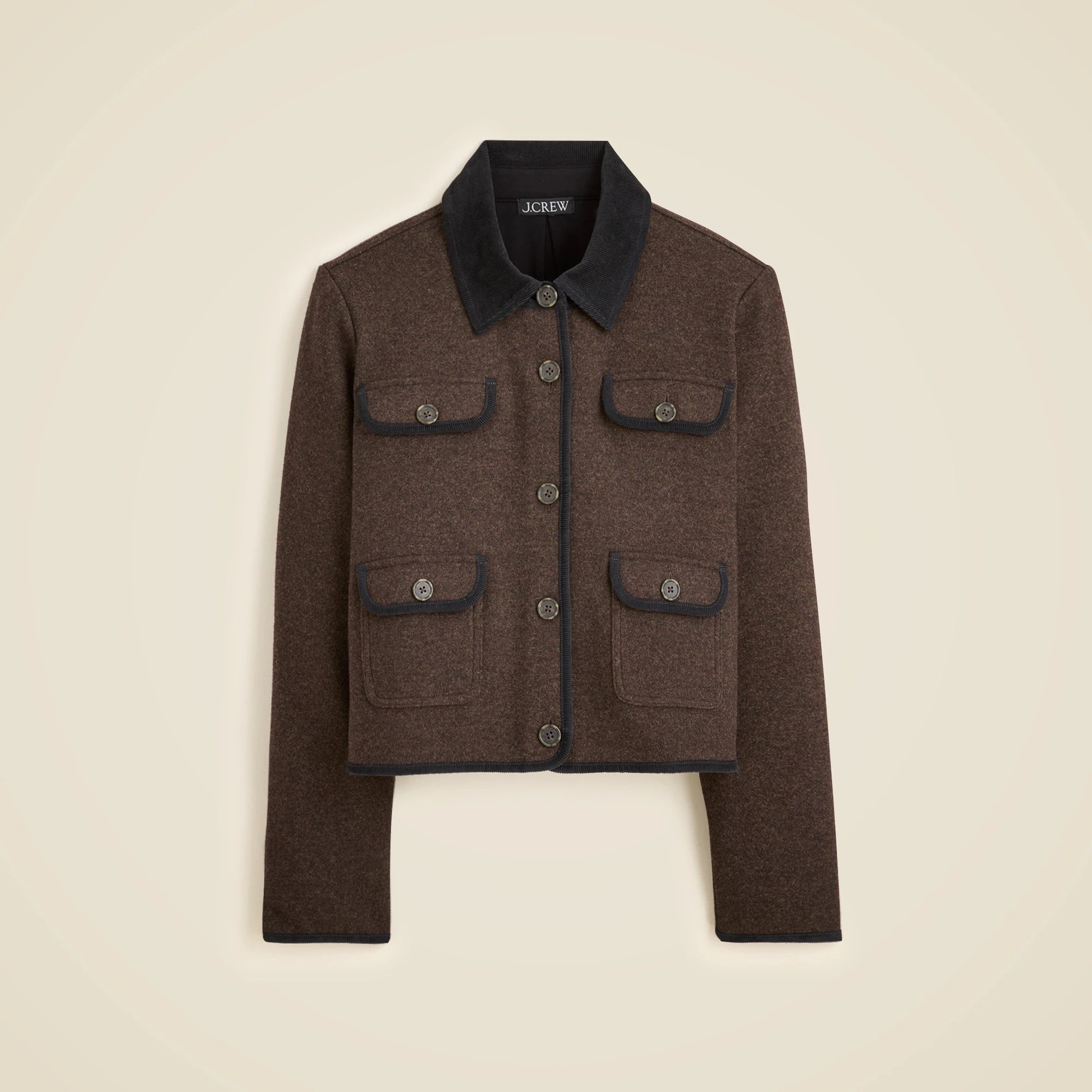 The structure of a jacket, the softness of a sweater. An easy choice for cooler days, this versatile layer comes with four flap pockets, a classic corduroy collar and tonal trim details. Plus, it's crafted from a cozy wool blend that's light enough so you don't have to take it off inside.