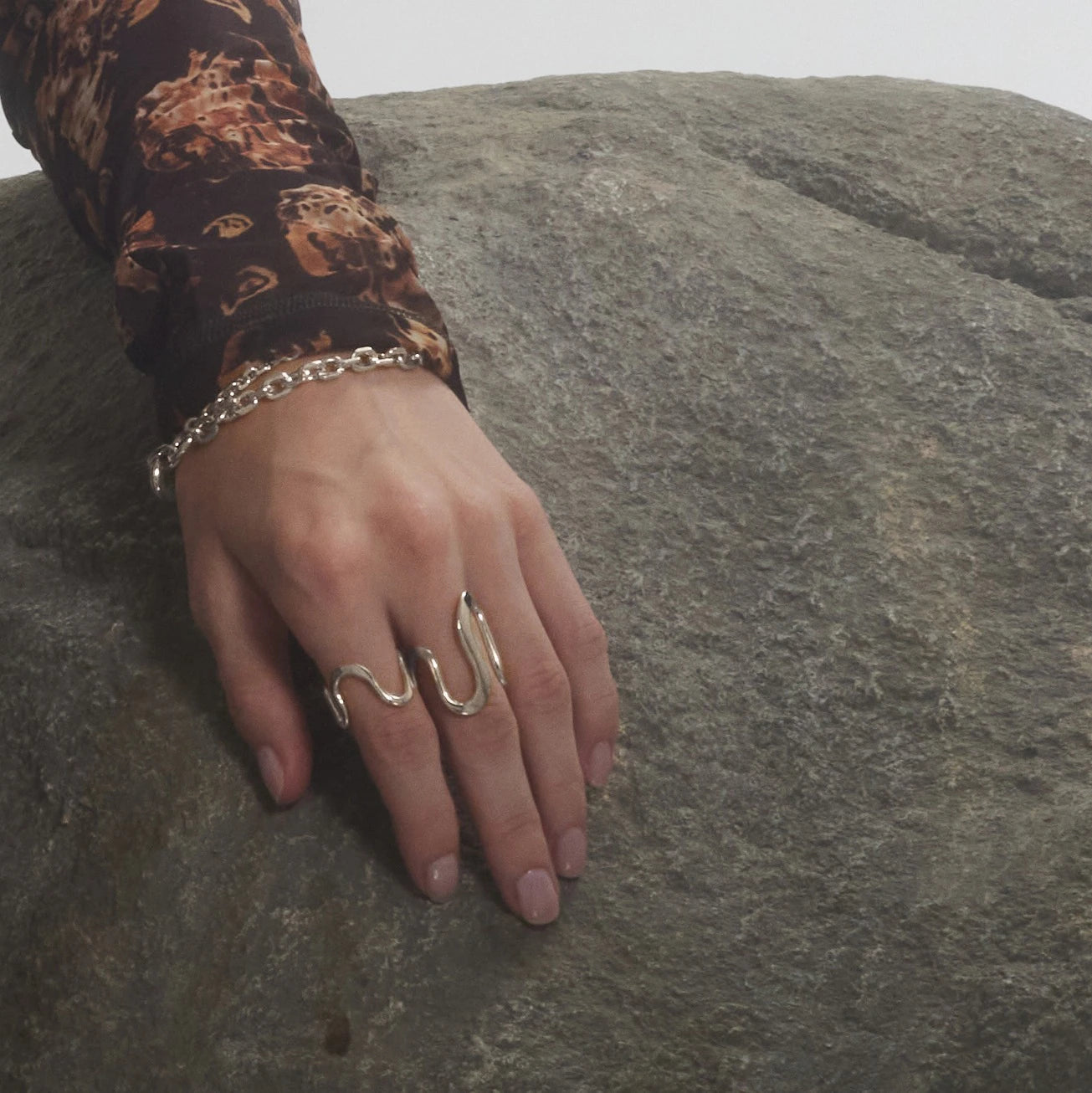 Lady Grey is a New York-based luxury-jewelry brand. Designed and handcrafted by Jill Martinelli and Sabine Le Guyader, the brand is recognized worldwide for its trademark aesthetic and both ethically and socially conscious practices, as well as its influential following. This fun and whimsical statement ring measures 1" tall at the highest point but 1/2" tall in the back for comfort and wearability.