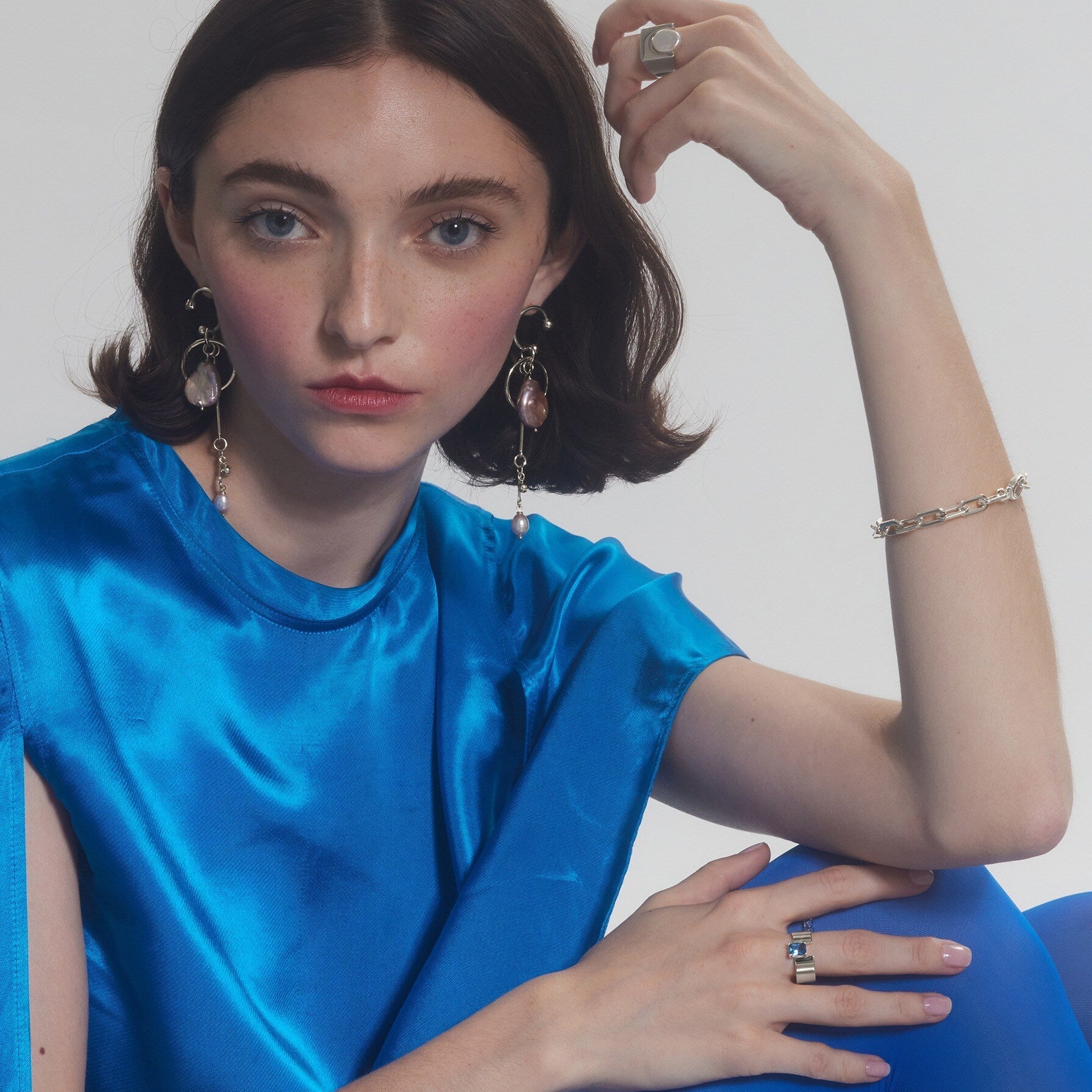 Lady Grey is a New York-based luxury-jewelry brand. Designed and handcrafted by Jill Martinelli and Sabine Le Guyader, the brand is recognized worldwide for its trademark aesthetic and both ethically and socially conscious practices, as well as its influential following. The split Wade ring showcases a drop-set 7mm x 5mm octagon-cut blue zircon gemstone in a clean and minimalistic design.