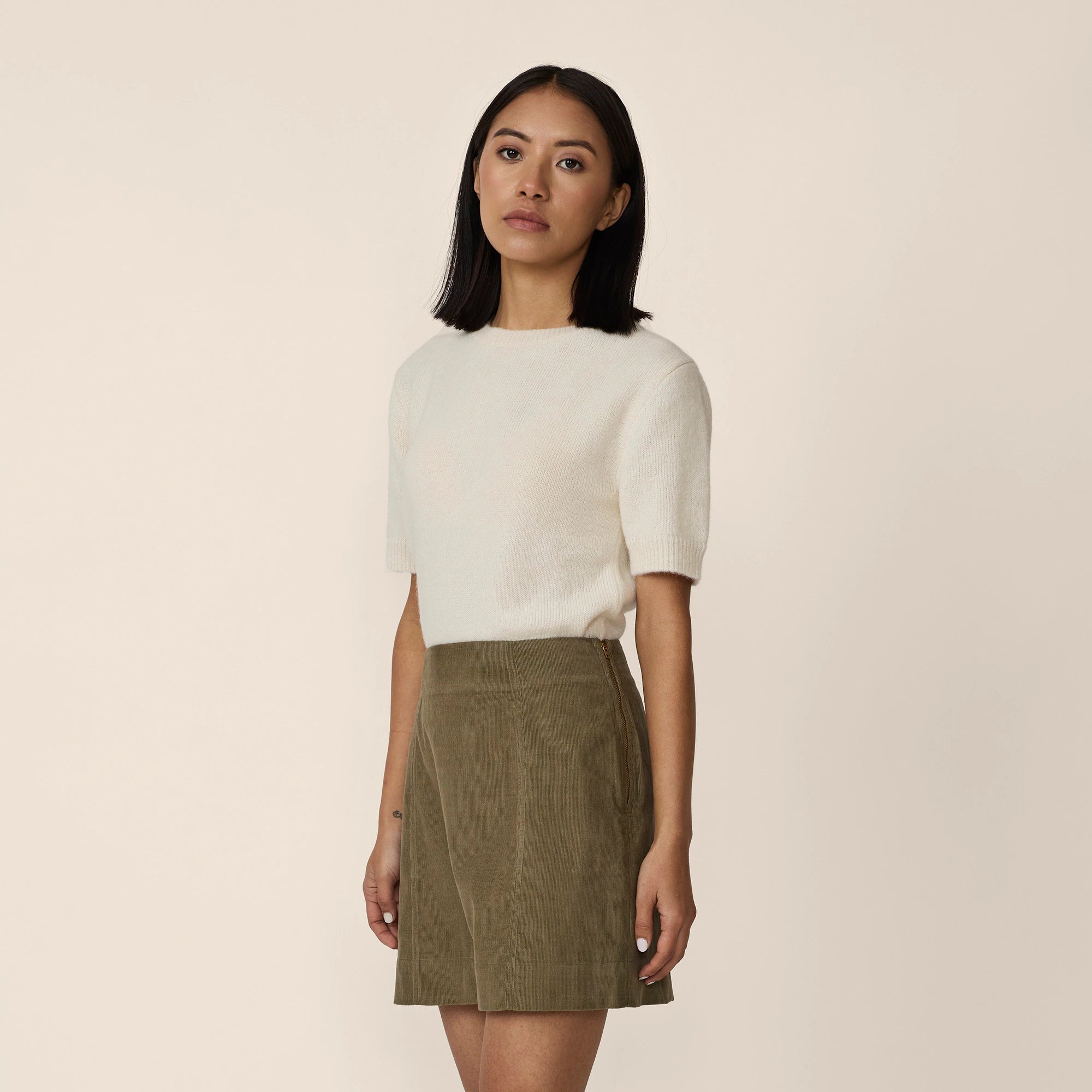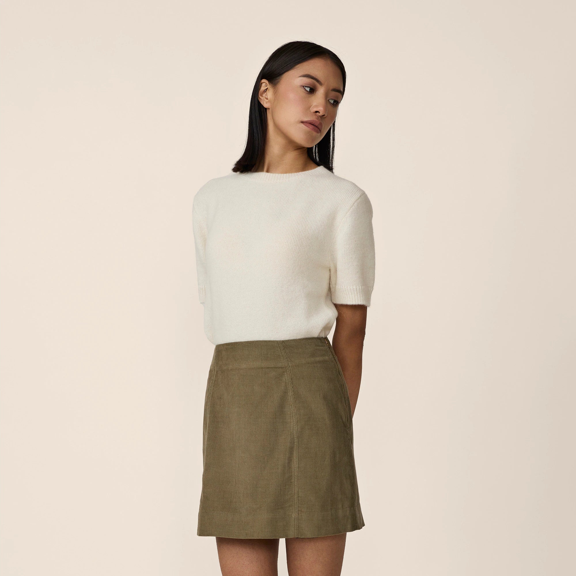 Founded and run entirely by women, LAUDE is a sustainable apparel label that works with female-led artisan co-ops around the world. Each super-versatile piece is handcrafted from upcycled, ethically sourced materials. Made from soft, premium corduroy, this Mini Skirt offers a timeless, versatile design. Its tailored fit pairs effortlessly with sweaters for a relaxed look or with the Boyfriend Shirt in washed denim for casual days. For a more polished ensemble, layer it with the matching Boy Blazer to elevate your outfit. Featuring a novelty locked side zipper, this skirt adds a unique touch of detail, combining comfort, style and modern appeal.