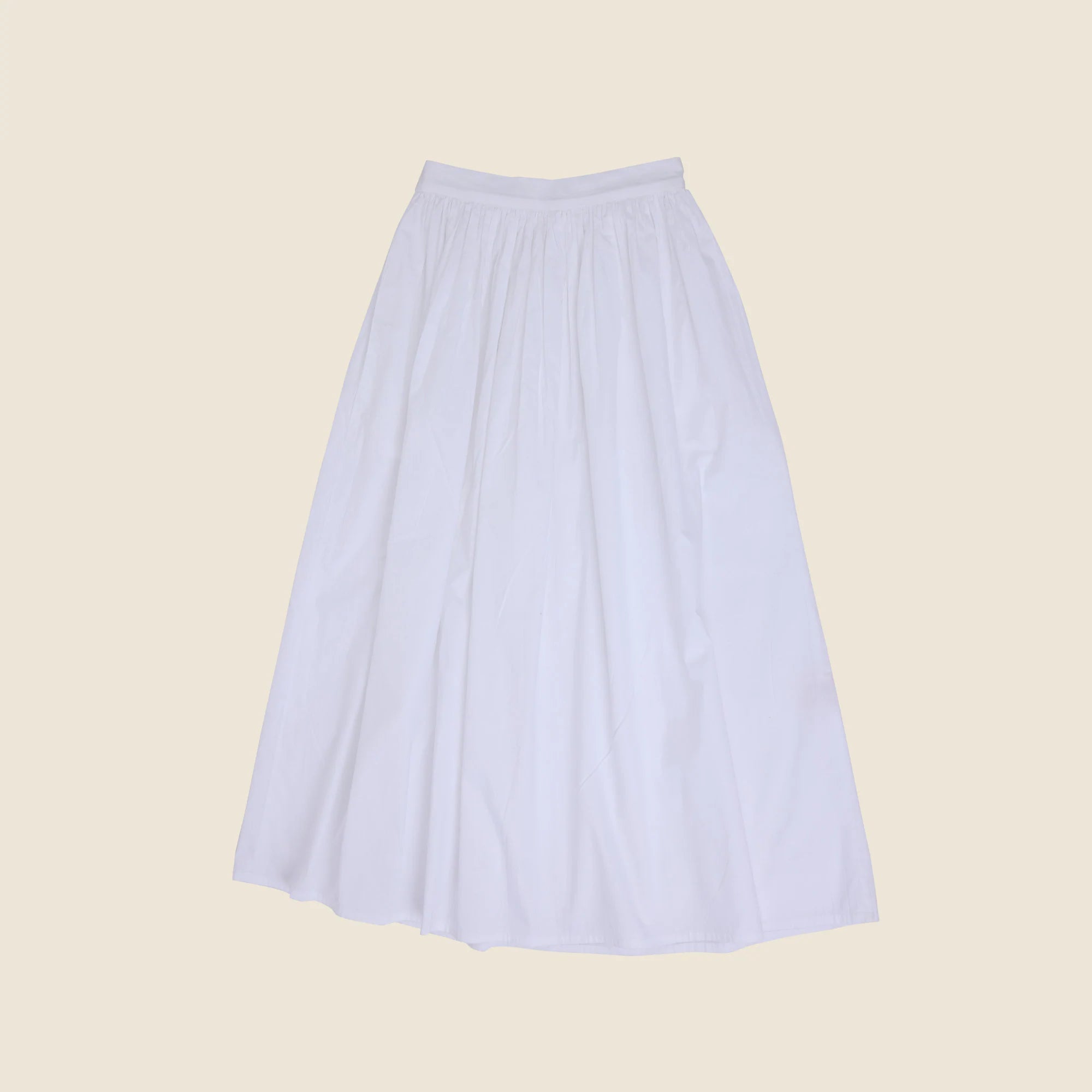 Founded and run entirely by women, LAUDE is a sustainable apparel label that works with female-led artisan co-ops around the world. Each super-versatile piece is handcrafted from upcycled, ethically sourced materials. Introducing our effortlessly chic midi-length skirt, crafted from our premium organic cotton poplin with a luxurious, washed finish. Designed for everyday ease, this skirt combines comfort with elegance. Its soft elasticated waist with subtle gathers ensures a flattering fit, while the convenient inseam pockets at the hip add practicality. Pair it seamlessly with our Relaxed Short-Sleeve Shirt to complete your ensemble with laid-back sophistication.