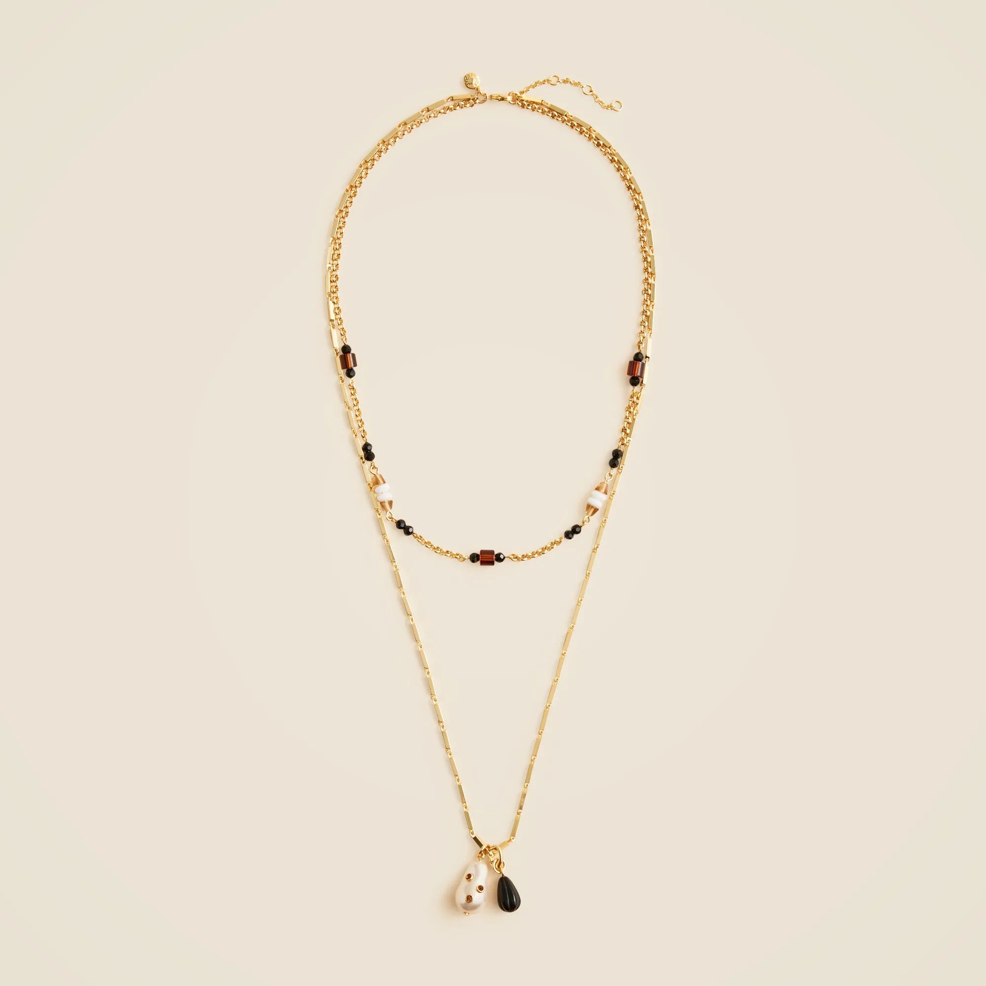 A necklace set with all the charm(s). This layered duo, strung with a mix of glass stones and beads—each one a tiny statement on its own. Feel-good fact: This style was made using eco-friendly recycled-brass casting. P.S. Want to keep your jewelry looking like new? We recommend removing it before showering or exercise and putting it on after applying hair products or perfume. To clean your pieces, polish them with a soft, dry cloth—and when not wearing, store them in a pouch or jewelry case.