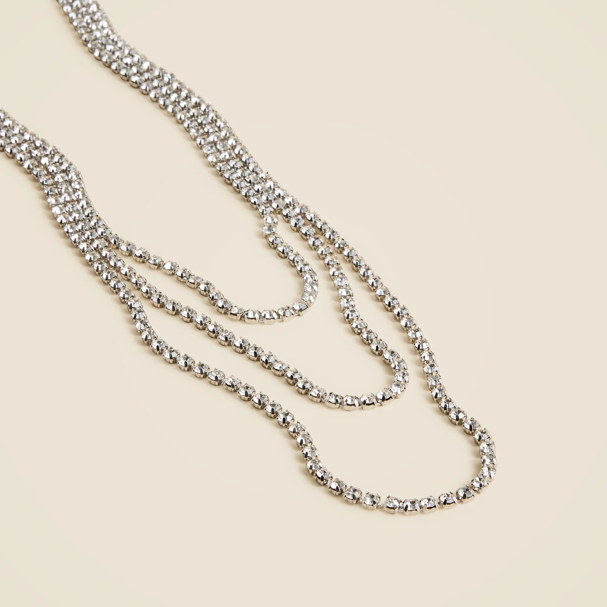 Love the layered look? Instead of searching high and low for a pair of necklaces that work perfectly together, try this three-in-one style featuring elegantly draped strands of crystals. Instant chic! Want to keep your jewelry looking like new? We recommend removing it before showering or exercise and putting it on after applying hair products or perfume. To clean your pieces, polish them with a soft, dry cloth—and when not wearing, store them in a pouch or jewelry case.
