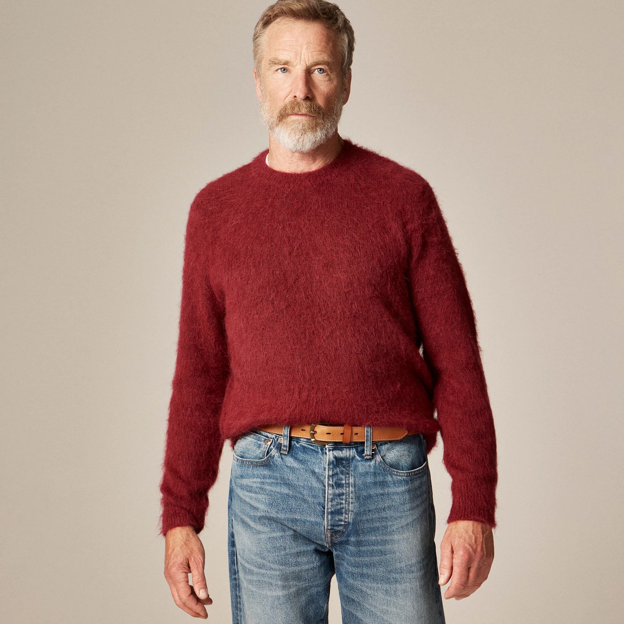 Take any outfit up a few notches. This smooth leather overlay belt is finished with contrast stitching and a round brass buckle for just the right amount of everyday refinement.