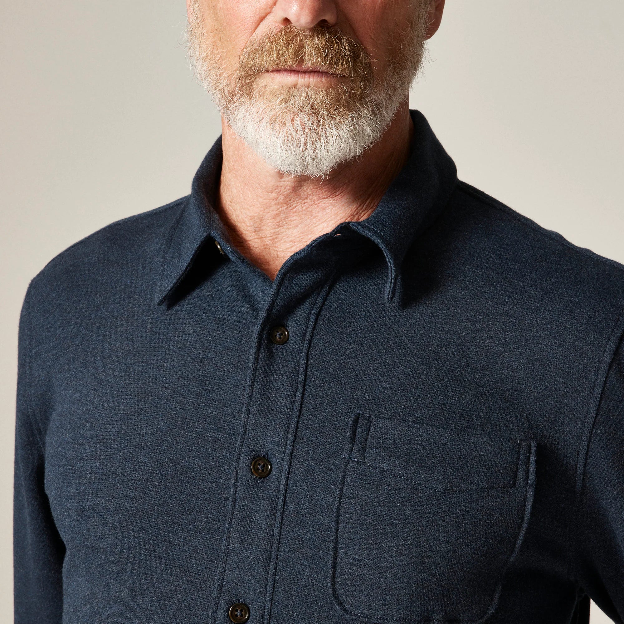Presenting a study in contrasts: rugged-yet-light, impossibly soft-yet-stretchy. The feel of a sweater, with the look of a shirt. We reworked our customer-favorite Seaboard fabric in a new lighter weight, so you don't have to wait for peak fall to achieve peak comfort. This fabric gets its incredible feel from being double-knit instead of woven, which gives it built-in flexibility. And if this weren't enough, we brushed both sides, so it's even softer inside and out.
