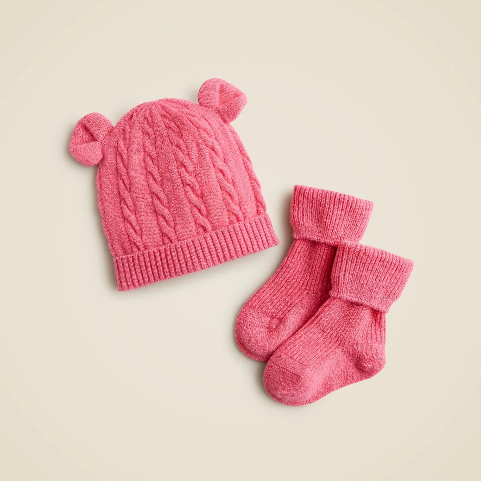 Cashmere has never been cuter. . . Our baby cashmere collection is back, in new playful, giftable styles for the littlest members of the family. This beanie and bootie set will have them cozy from head to toe, and is made from the same high-quality cashmere as Mom and Dad's favorite sweaters. Note: This style is available in one size for children aged 6-12 months. We upgraded our cashmere collection with finer, loftier fibers to make the soft stuff, somehow, even softer. And because we like to make a lasting impression, our new cashmere is also more enduring than ever—in both quality and style. We're invested in bringing you the best in cashmere, so you can feel great about investing in it too. We're proud to support responsible cashmere production through our partnership with the Aid by Trade Foundation (AbTF), a nonprofit that promotes sustainable agricultural development across the globe. As the foundation's first U.S. member, we source cashmere that is certified to the AbTF's The Good Cashmere Standard®, which ensures the welfare of the cashmere goats, protects natural resources and improves the working conditions of farmers and farmworkers in Inner Mongolia.
