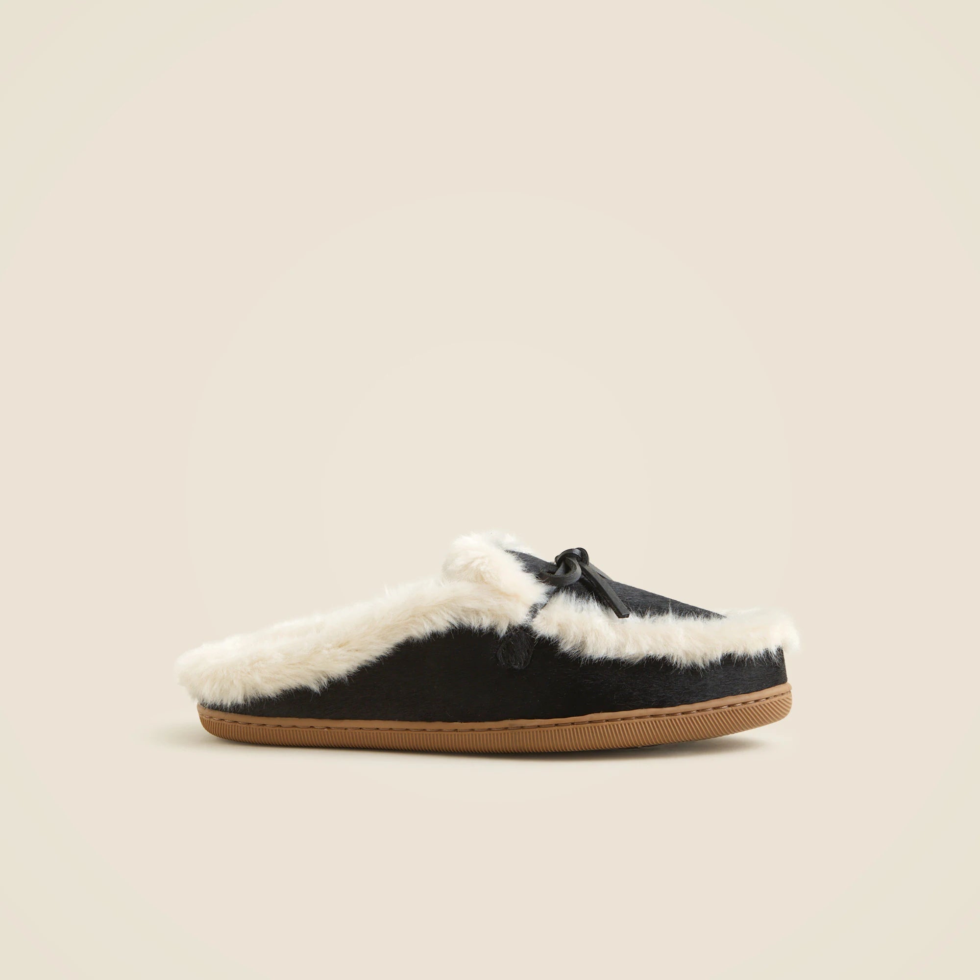 Meet the new lodge mule. We refreshed our faux fur–lined slipper with a backless silhouette that's even easier to step into, in a textured calf hair finish that's a little more luxe. Consider them your coziest cold-weather essential—and the perfect gift too.