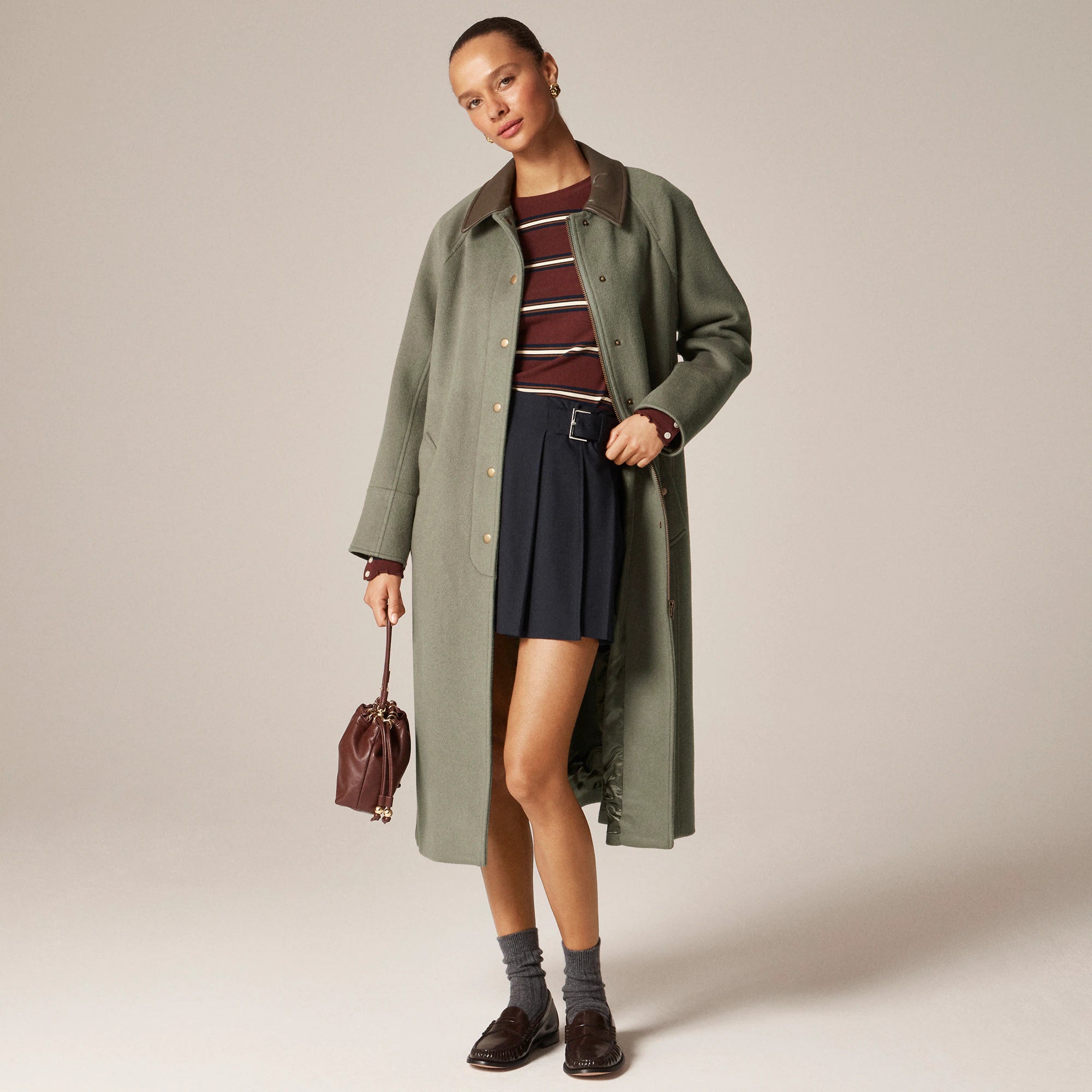 A J.Crew icon since 1983. . .Always evolving, this is the latest take on our signature Barn Jacket, a style that looks sleek and polished no matter what you're wearing underneath. A couple of can't-miss details: the contrasting faux-leather collar, gold snap buttons and drapey, lightweight blend of wool and TENCEL™-lyocell.