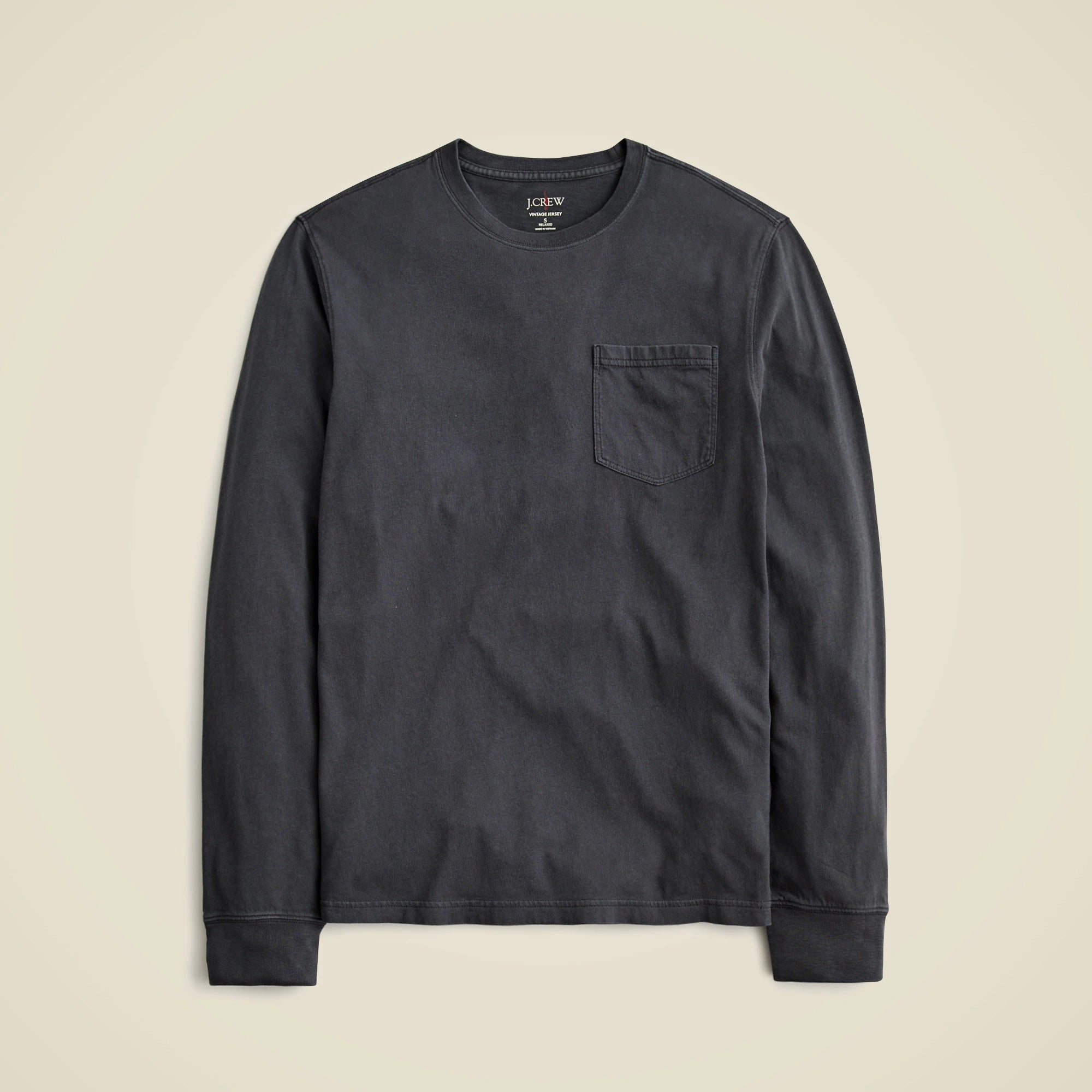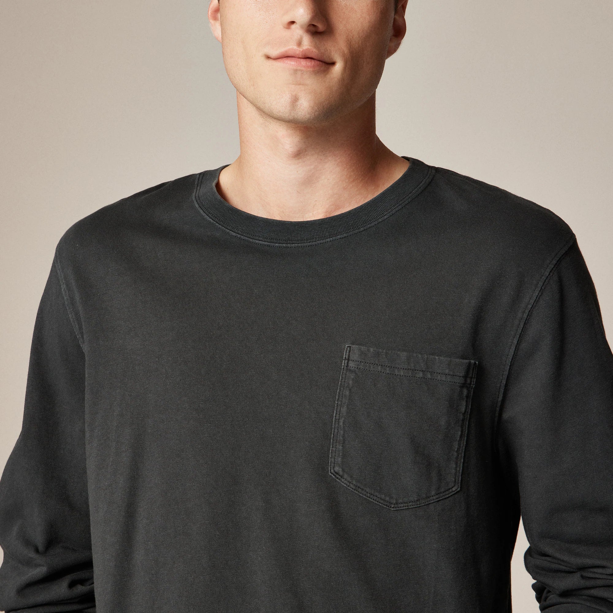 Long-sleeve vintage-wash cotton pocket T-shirt