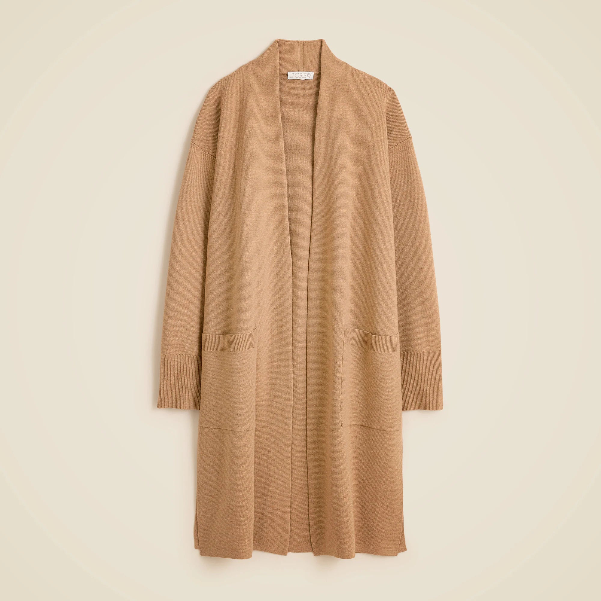 A long layer that does the work for you. This versatile style comes with a midlength cut that falls just below the knee, heritage-inspired patch pockets and an open front. Plus, it's crafted from a cozy knit fabric with the perfect amount of drape that we can guarantee you'll want to wrap up in.