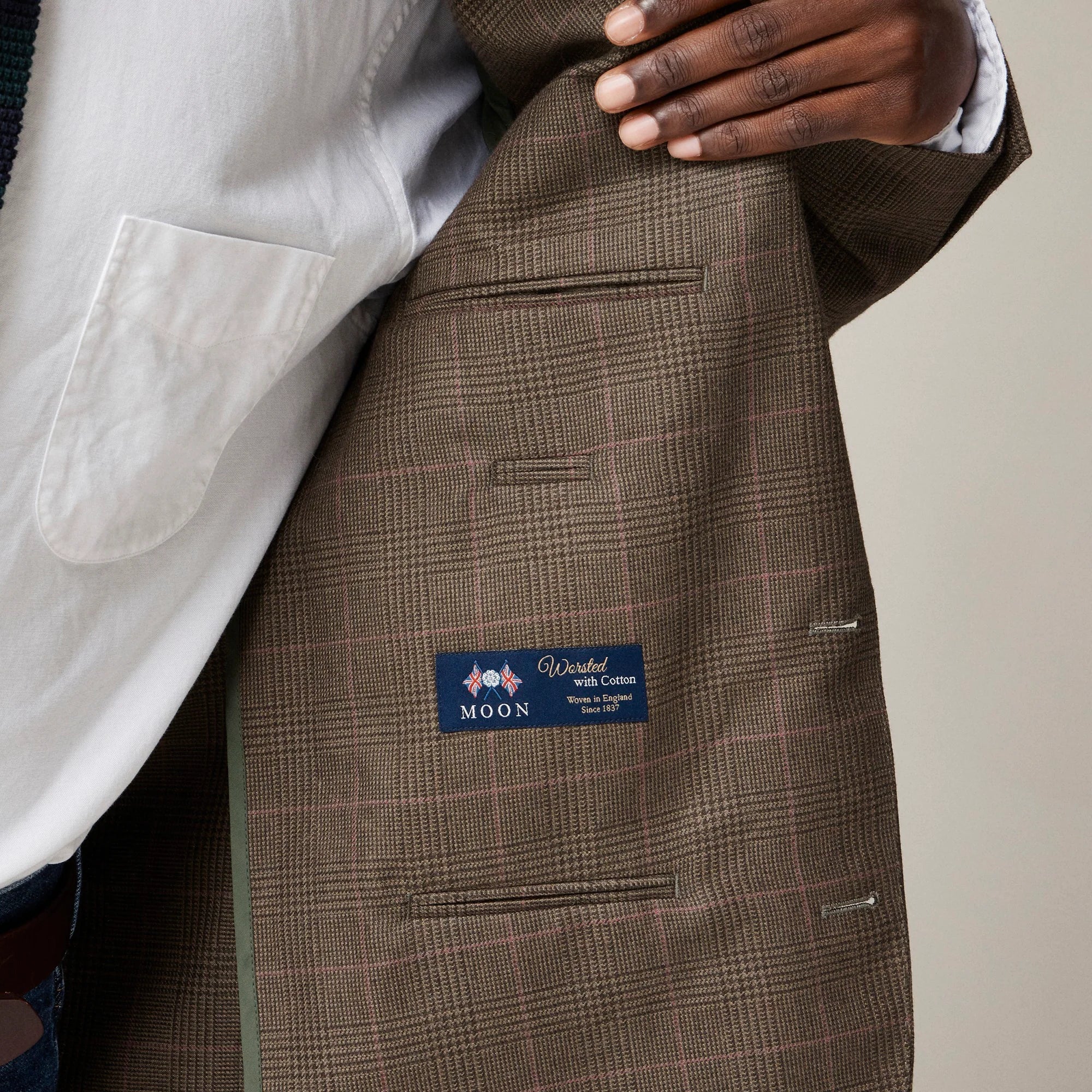 Welcome to the J.Crew Suit Shop, home of our three signature fits: Ludlow (a modern slim fit), Crosby (a traditional classic fit) and Kenmare (a relaxed-but-polished fit). We craft our suits in premium fabrics from some of the world's best mills using time-honored tailoring techniques. We cut this blazer in a cotton-wool blend from Abraham Moon & Sons, which is renowned as one of the world's finest fabric mills. Established in 1837 in Guiseley, England, it's one of the last in Great Britain to handle everything from dyeing to spinning to finishing all in one place.