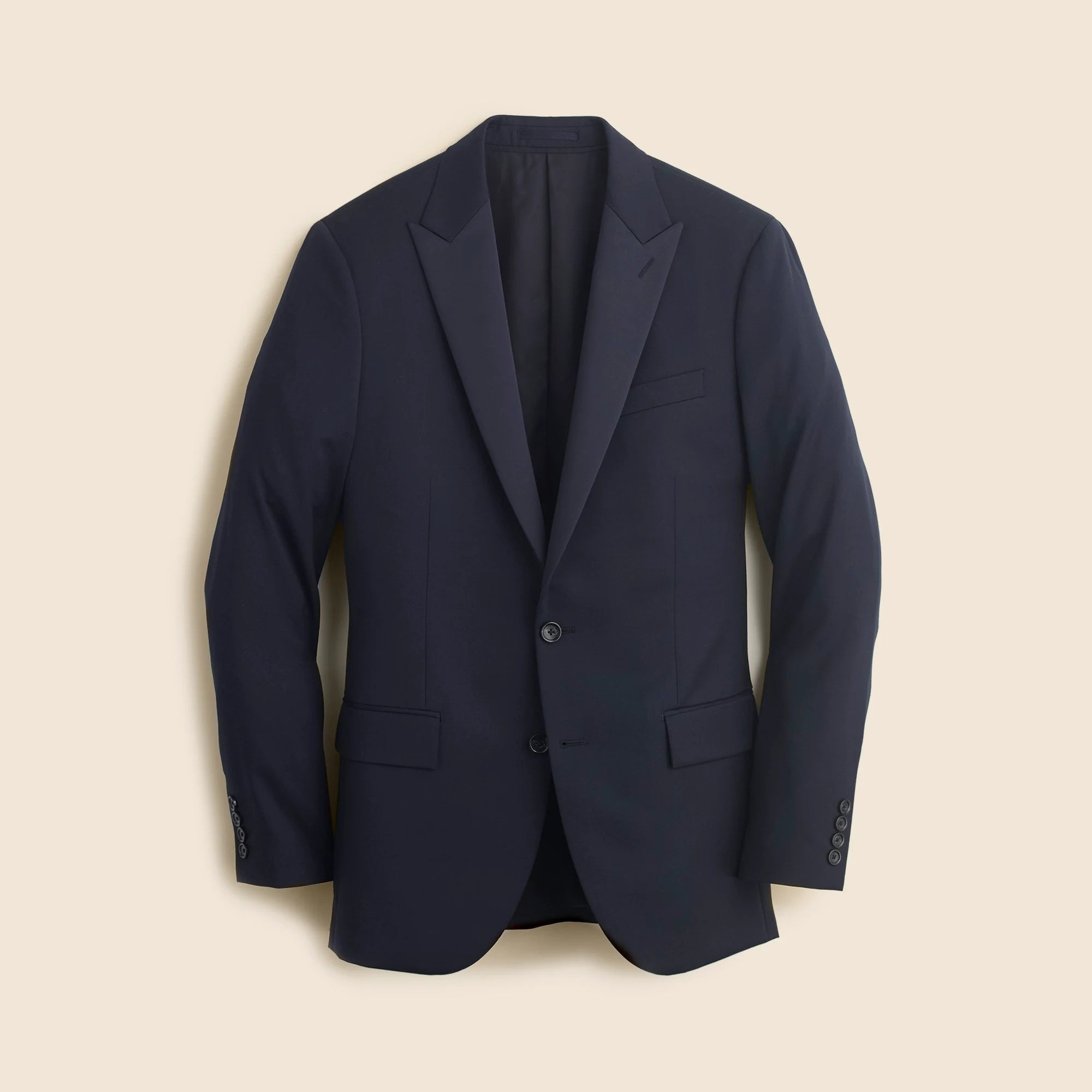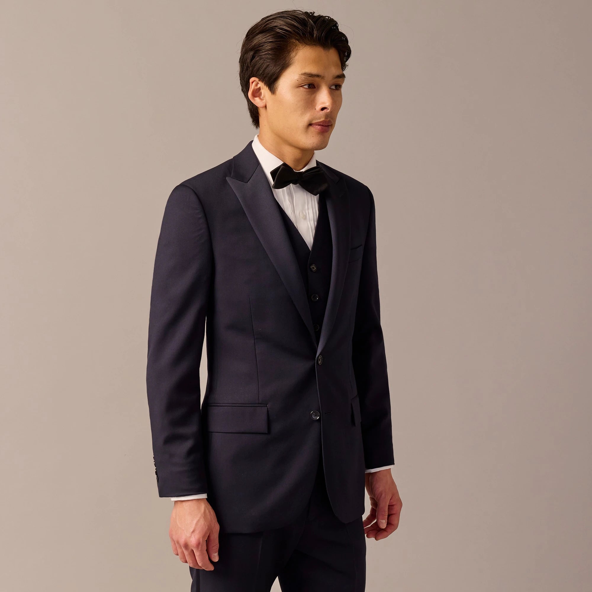 Welcome to the J.Crew Suit Shop, home of our three signature fits: Ludlow (a modern slim fit), Crosby (a traditional classic fit) and Kenmare (a relaxed-but-polished fit). We craft our suits in premium fabrics from some of the world's best mills using time-honored tailoring techniques. This tuxedo jacket is crafted in a luxuriously finished wool from Tollegno 1900 (est. 1862), one of the oldest mills in Italy. The peak lapels are made of rich satin, a stylish hallmark of timeless formalwear. Tailored, modern cut with a trim silhouette.